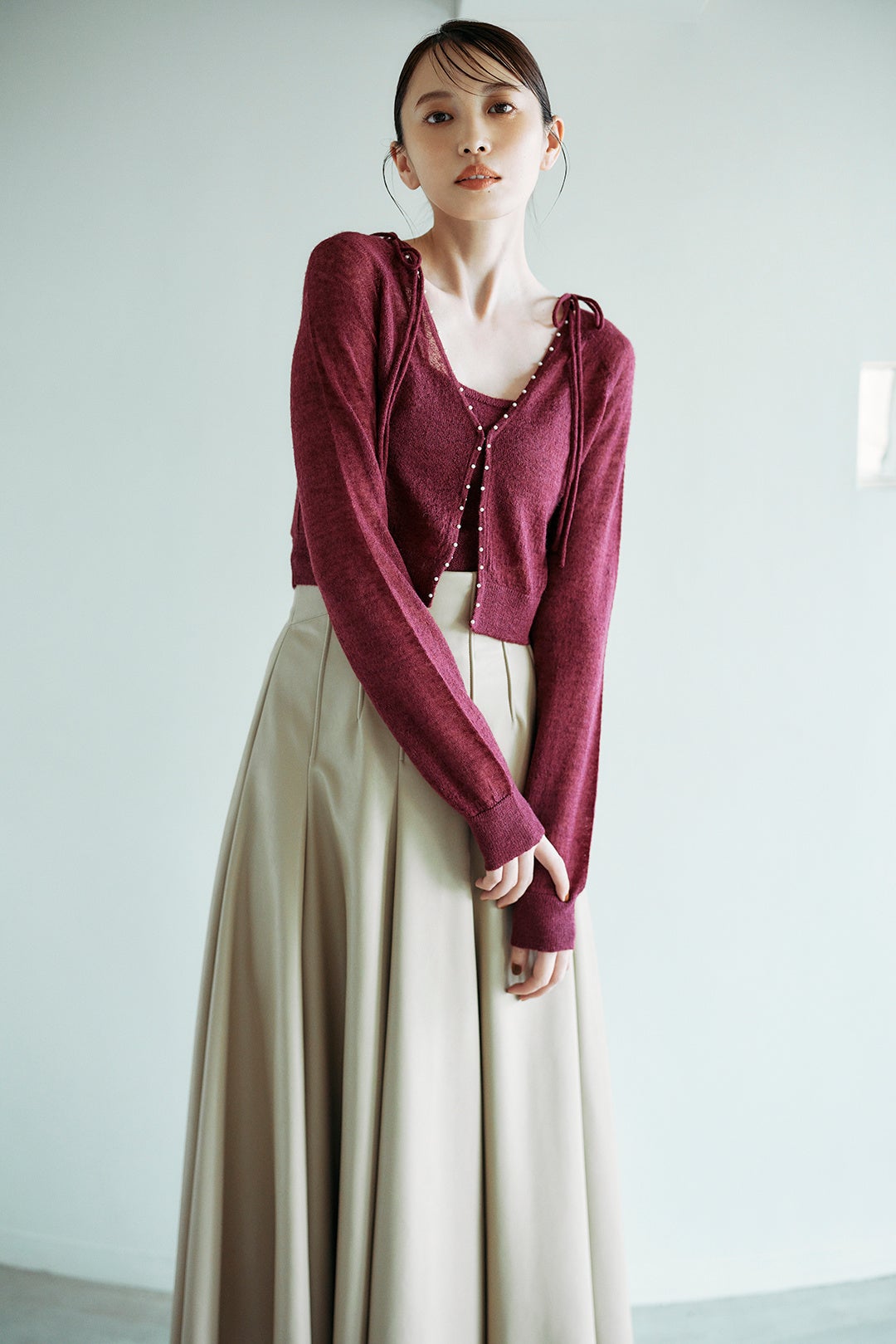 COAT ¥25,300 / CARDIGAN ¥9,900 / CAMISOLE ¥6,490