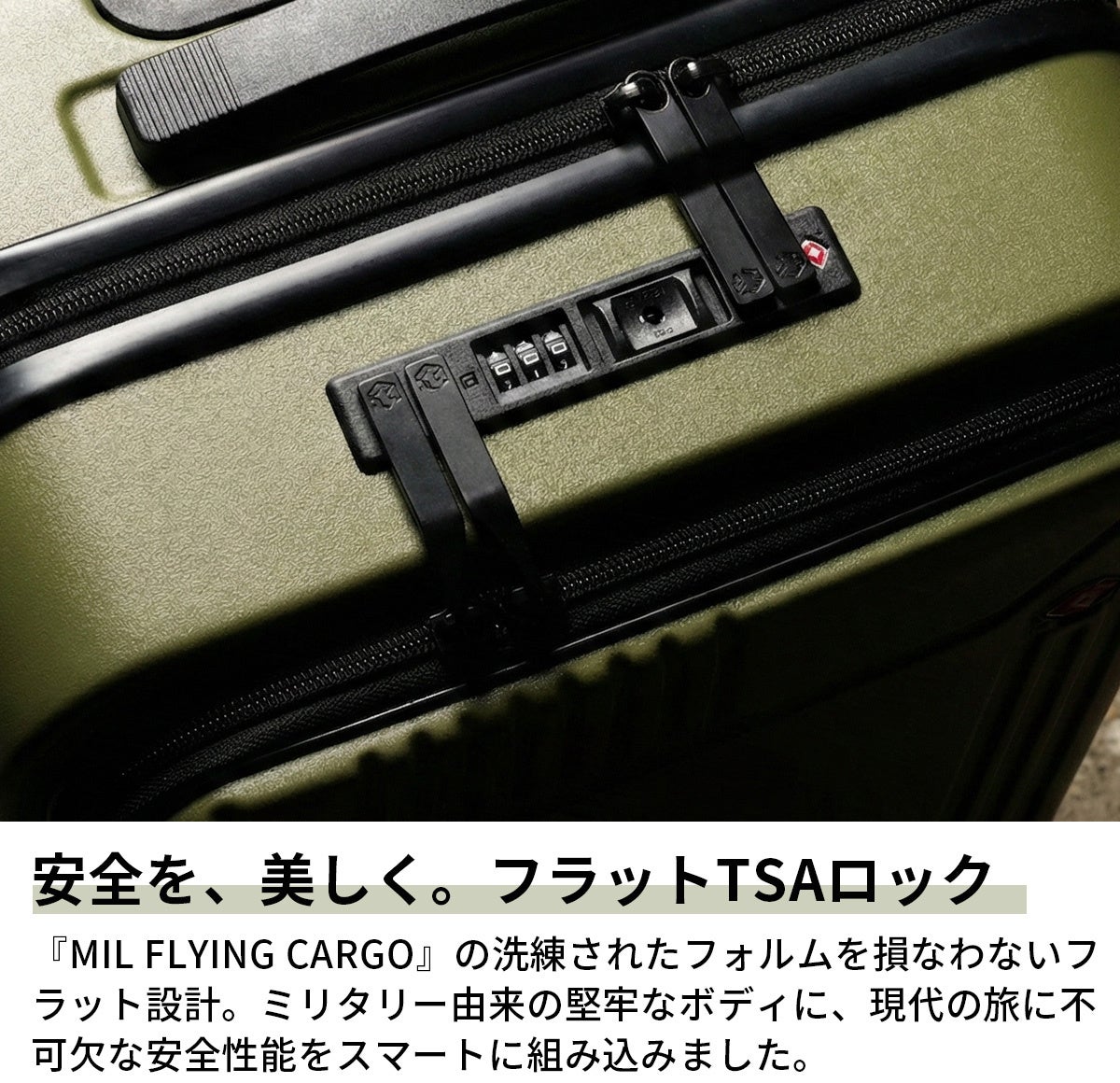 MILスペックを想起させる直線的なデザインと、無駄のない構造のキャリーケース。