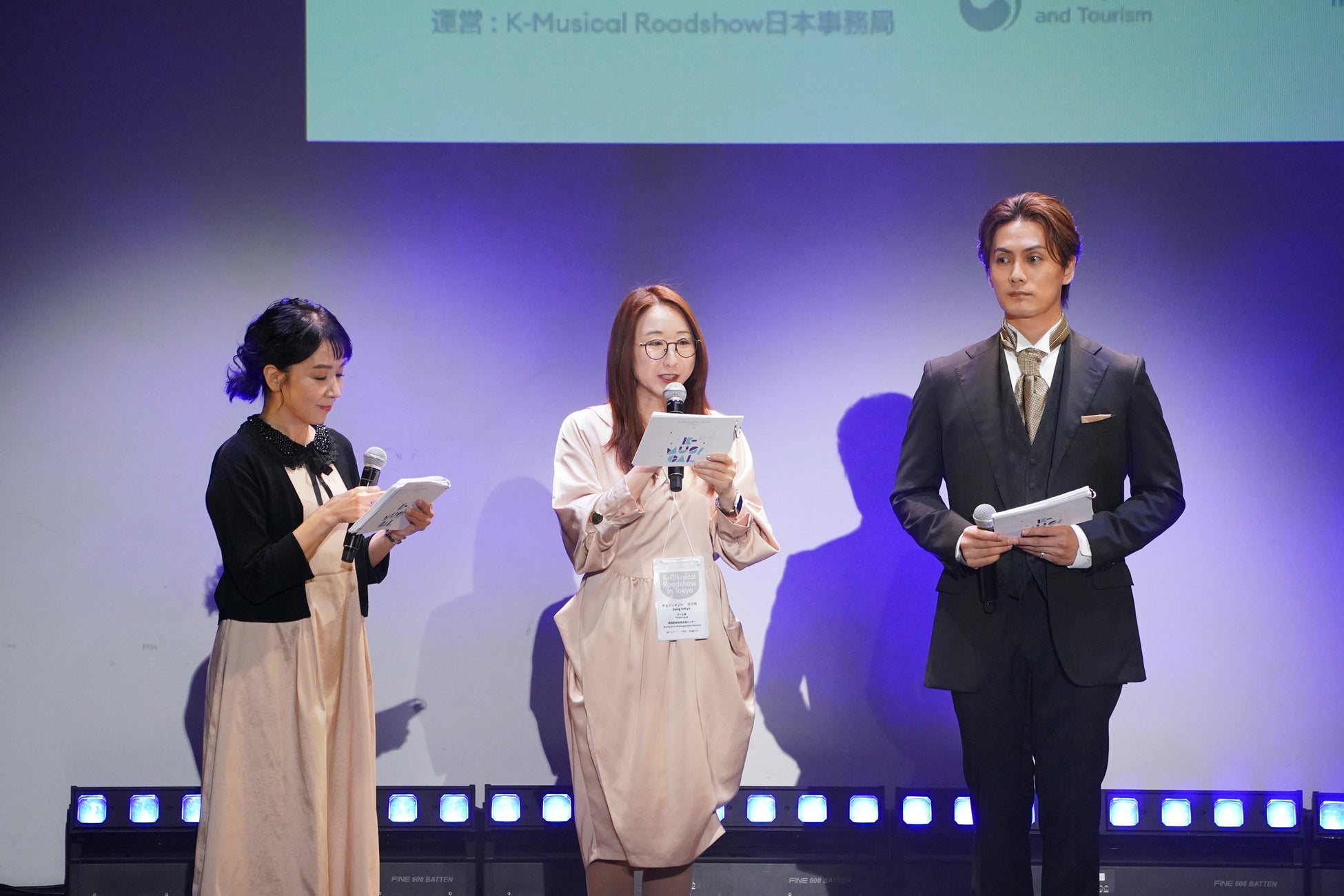 数多くの韓国ミュージカルに出演し、韓国での観劇も多く、観劇ミュージカル業界とも交流の深い加藤ならではの司会を展開。韓流スターのファンミーティングの司会や韓国大型ミュージカルの日本公演の通訳でも活躍するキム・テイは韓国発のオリジナル・ミュージカルにも詳しく、5作品の魅力を丁寧に引き出しました。加藤は、2023年のK-Musical Roadshow in TOKYOで紹介された『最後の事件』の日本公演の出演も決まっており、K-Musical Roadshowの意義がより伝わる公演となりました。