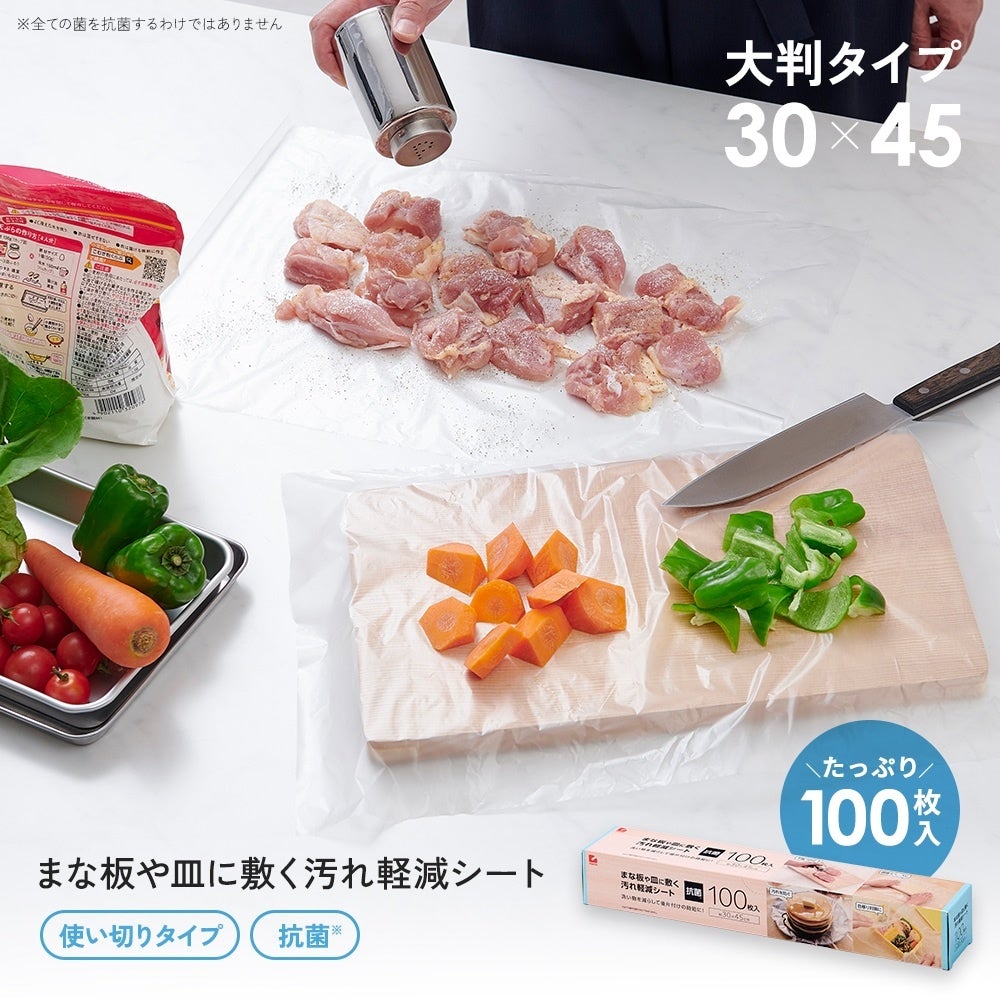 洗い物を減らして後片付けの時短に!「まな板や皿に敷く汚れ軽減シート」発売中