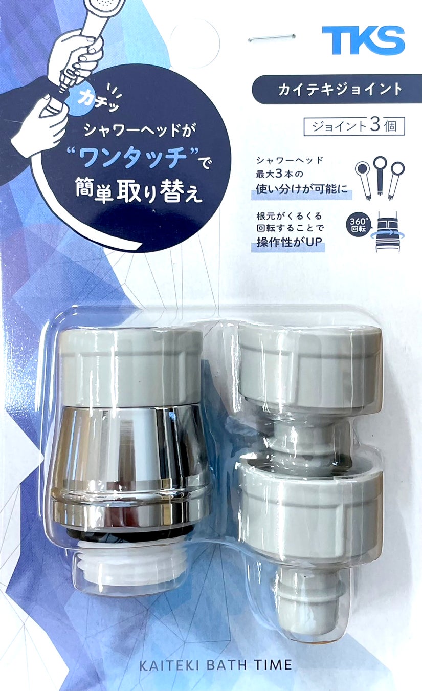 5月23日には、最大3つのシャワーヘッドを“ワンタッチ”で簡単に取り替えができる便利グッズ「カイテキジョイント」を発売いたしました(他社製品にも使用可能)。「使い分ける時代」の製品の第1弾となる、簡単にシャワーヘッドを取り替えられる接続部品です。