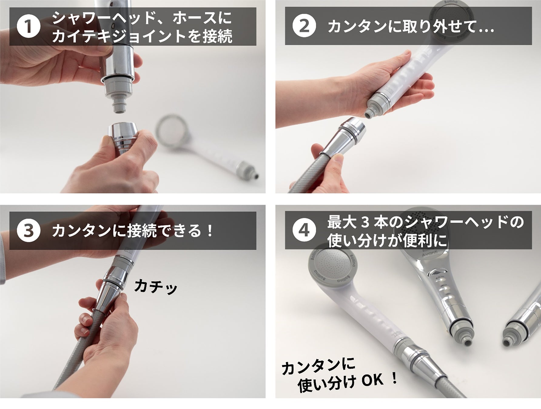 このほか、ジョイントを装着したシャワーヘッドも収納できる「カイテキシャワーハンガー」を近日発売予定。環境を整えることで、「使い分ける」時代に対応いたします。