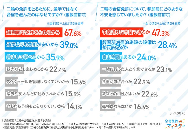 参加する季節の重要性や二輪合宿免許の満足度も明らかになり、多くの方が短期間での取得や、通学よりも費用が安いことに魅力を感じたことも明らかになっています。