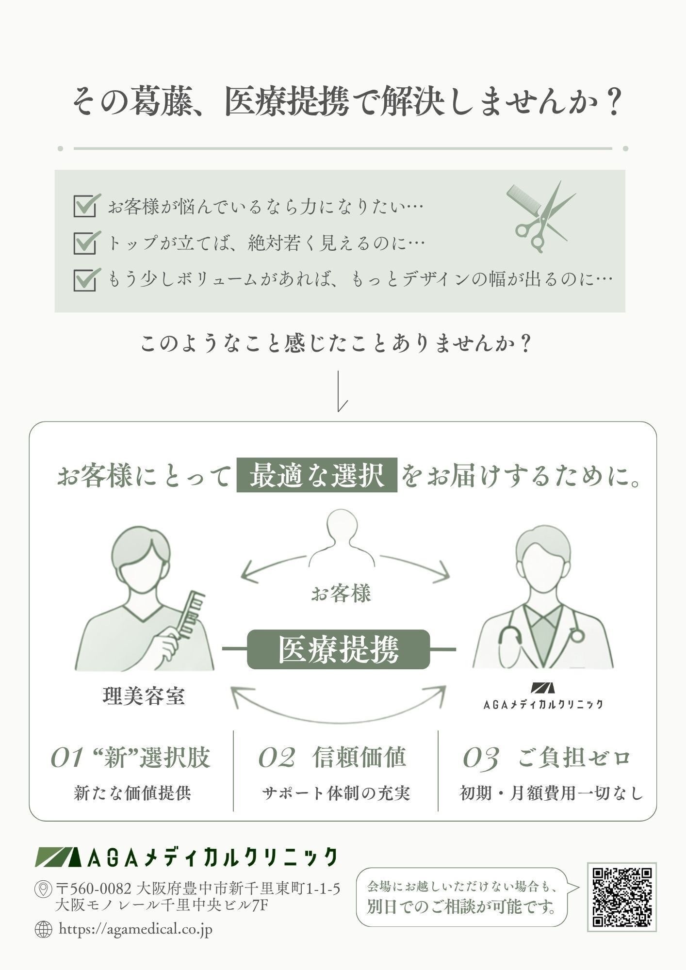 ブースでは、医療提携をご検討の理美容師・サロン経営者の皆さまへ具体的なスキームをご説明します。また、専門医による実際の診療や、話題のリバイブ施術の体験が可能です。
