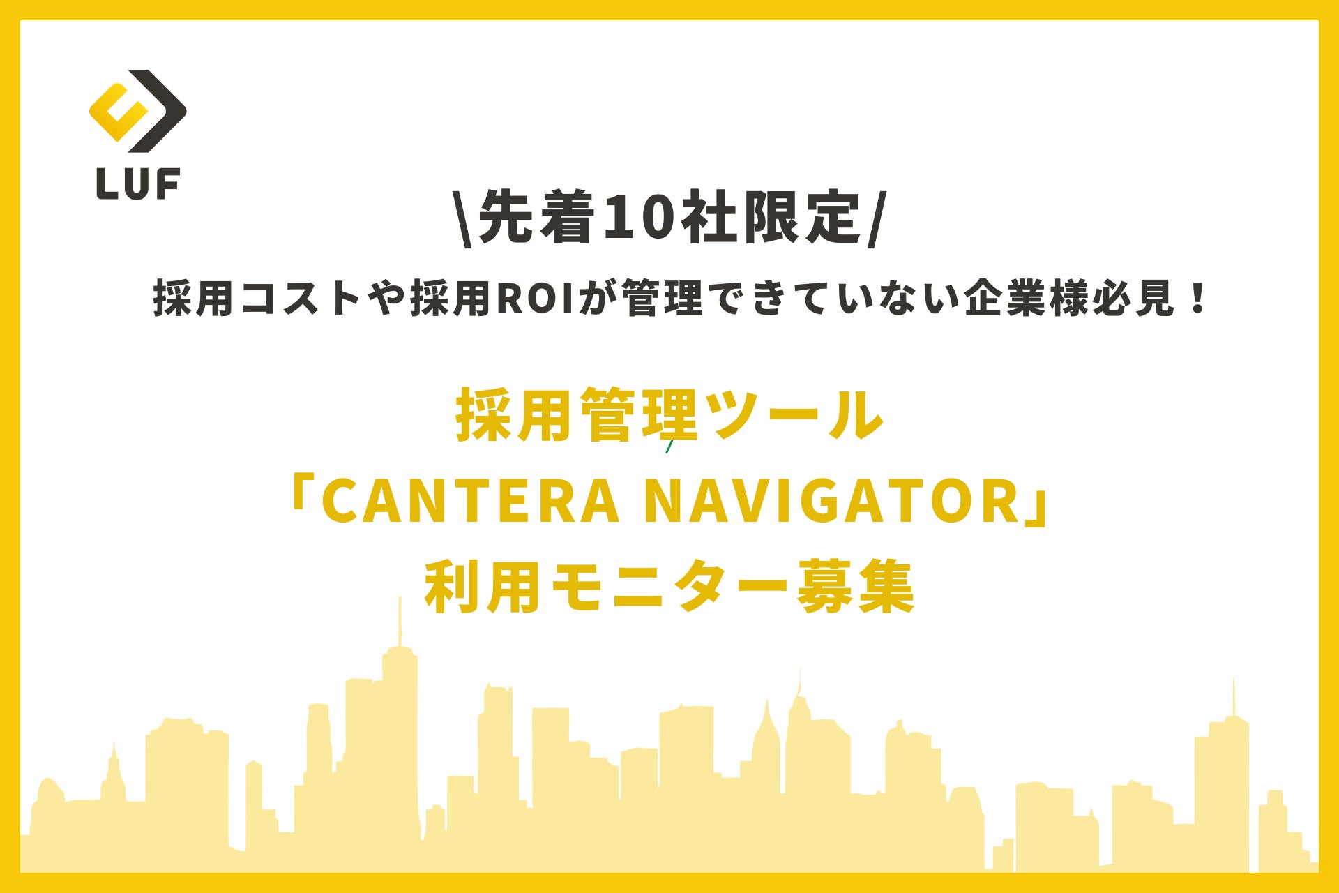 「働くすべての人に、待ち遠しい明日を。」を実現するLUF株式会社(本社:東京都港区、代表取締役社長:堀尾 司)は、採用管理ツール「CANTERA NAVIGATOR」の利用モニター募集を開始しました。