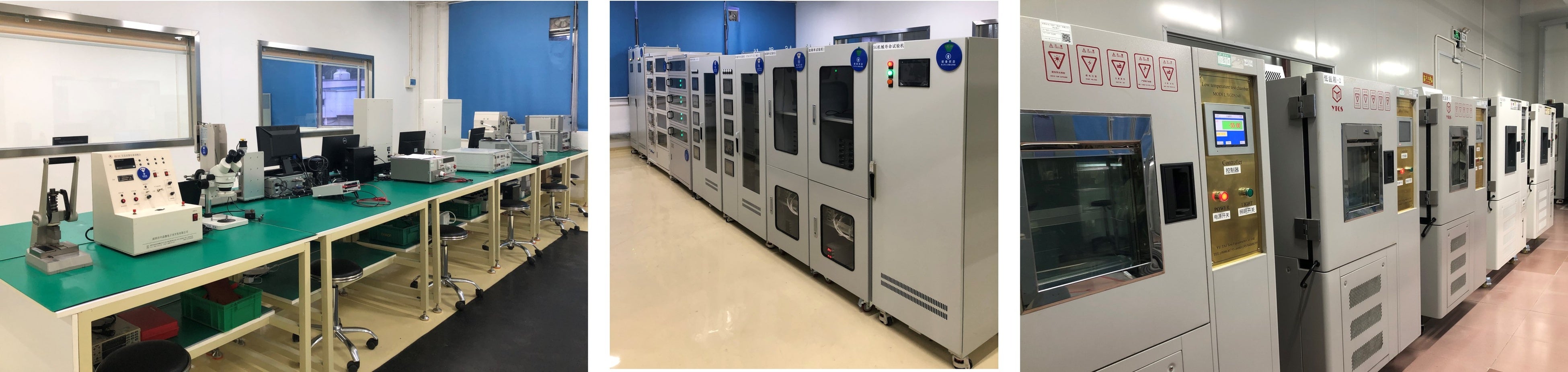CNASを取得した、深圳工場内の主な実験施設(左から測定室、耐久性試験室、環境試験室)