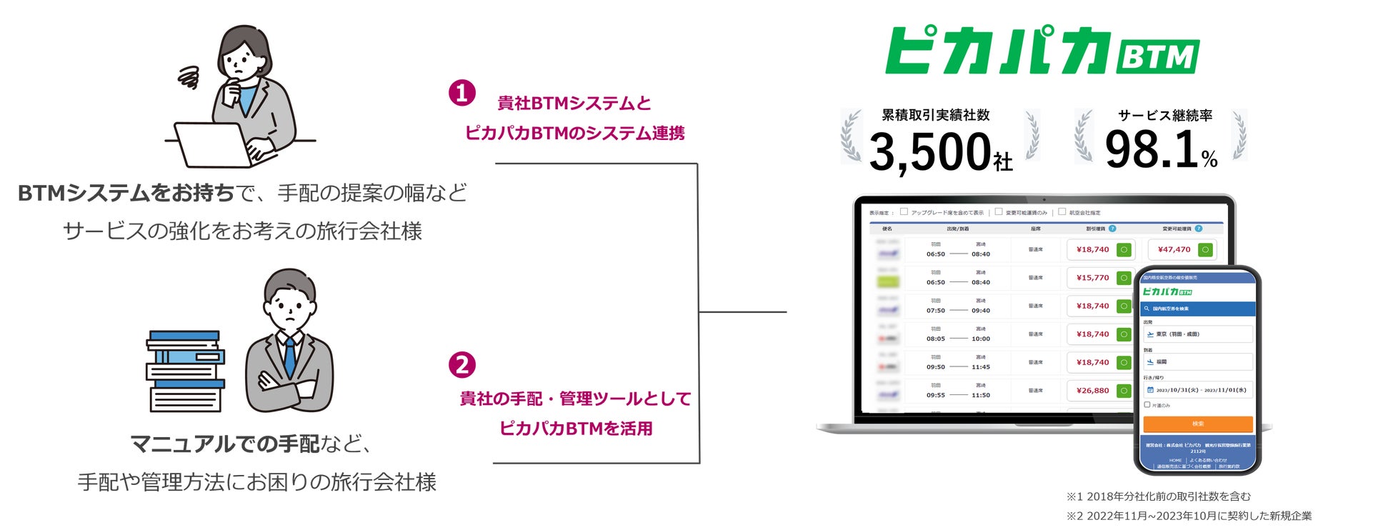 1. BTMシステムを運用している旅行会社様と「ピカパカBTM」が連携