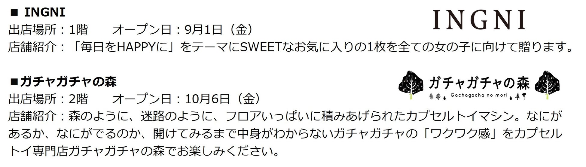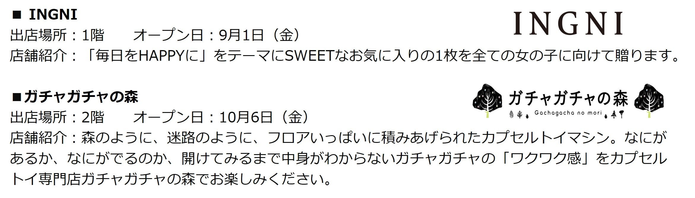 今秋のリニューアルではお客さまにより快適にショッピングをお楽しみいただけるよう新たに13店舗が加わり、さらに6店舗が改装を行い合計19店舗がオープンいたします。