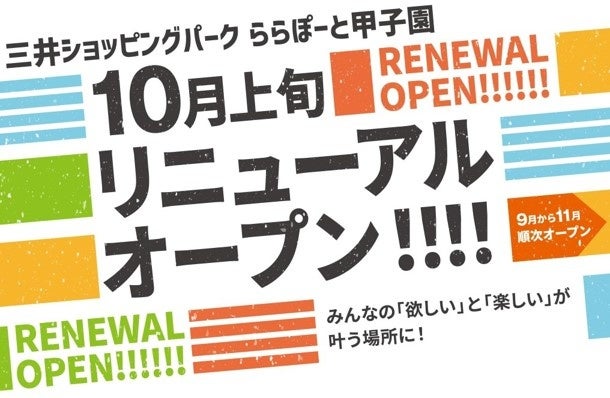 『三井ショッピングパーク ららぽーと甲子園』(所在:兵庫県西宮市甲子園八番町1‐100)は大規模なリニューアルを実施いたします。