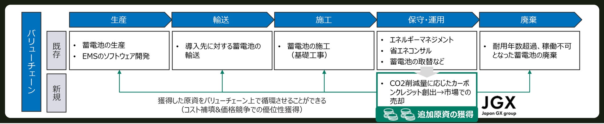 また、バリューチェーン上にカーボンクレジットの売買による収益化が追加されることで、ランニングコストや設備更新費用などを抑えることができます。