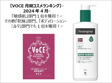 敏感肌用 ニュートロジーナ® CICAボディローション「VOCE月間コスメランキング」2024年4月カテゴリー3部門で1位を獲得!