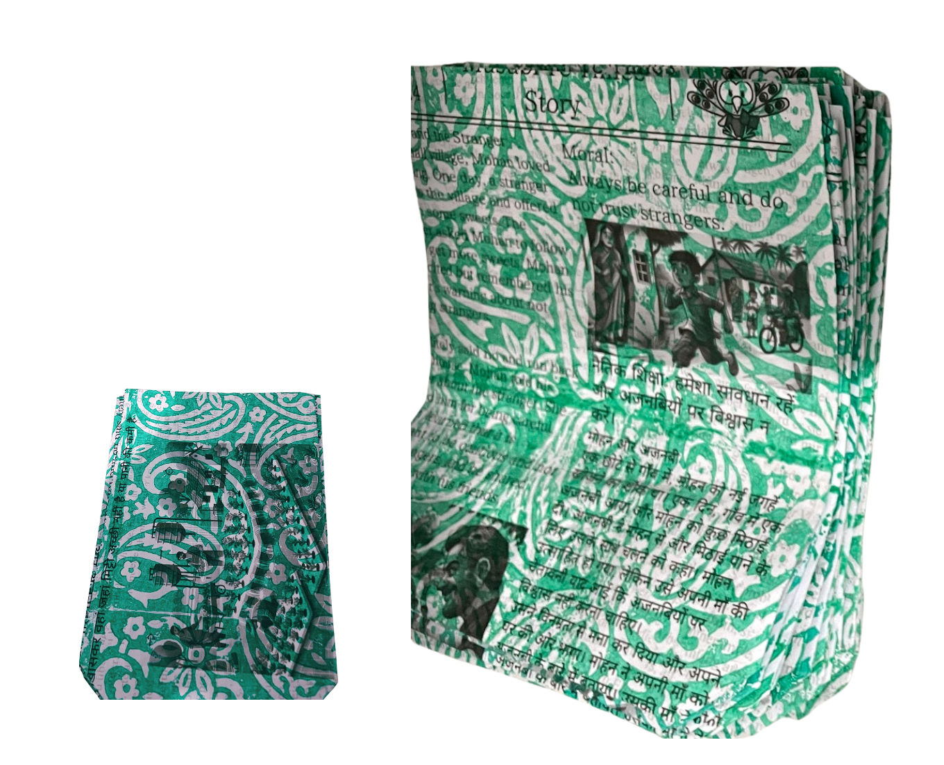 結び手がインドのビハール州で制作しているブロックプリントペーパーバッグは、伝統的なブロックプリント技法を用いた手作業で柄付けされており、ハンドメイドならではの温かみが特徴です。Little Hands Hawaiiは、このバッグの美しいデザインと環境への配慮、そして女性自立支援という活動の意義に共感し、今回の採用に至りました。