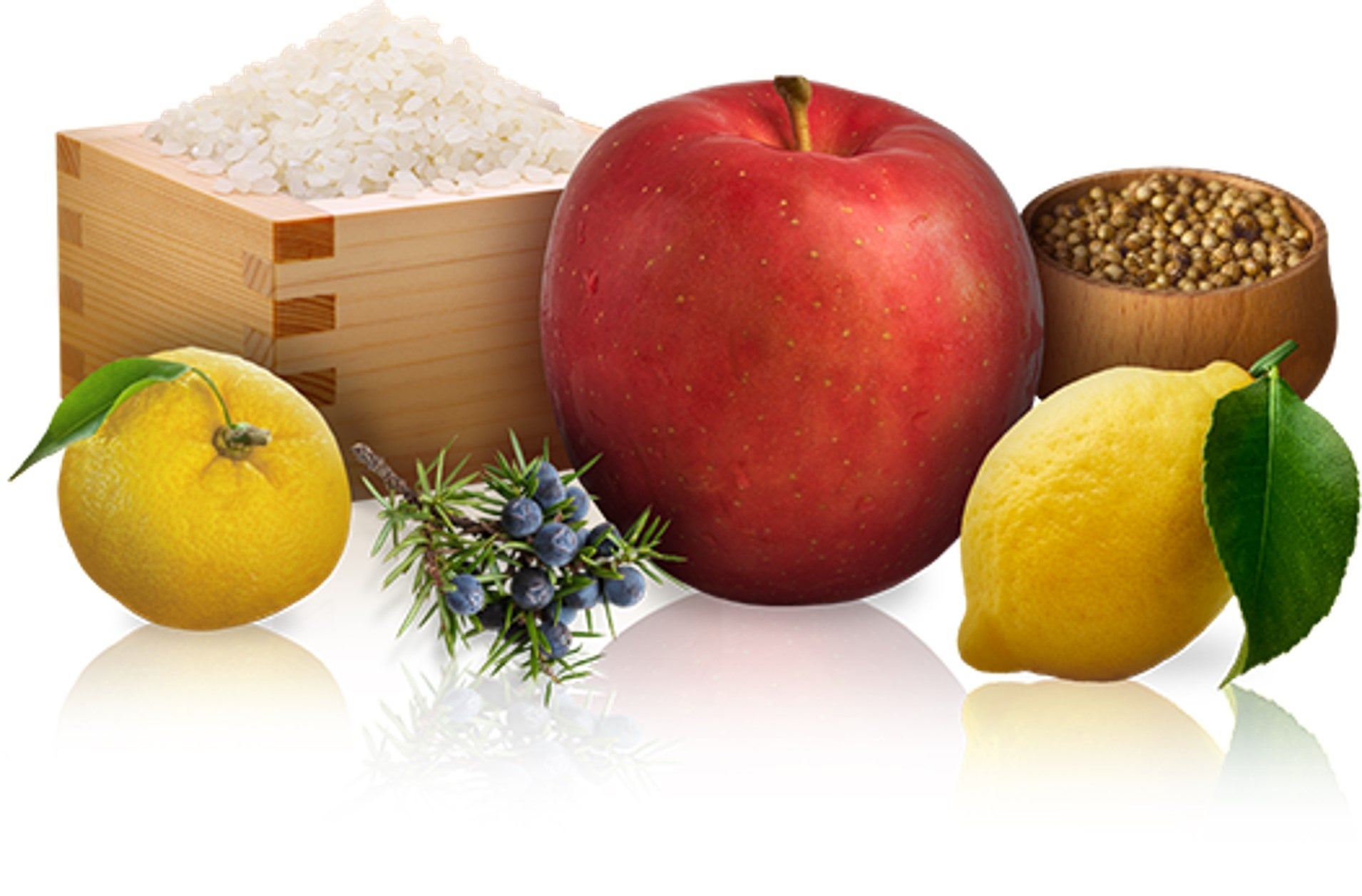 ジンは、使用するボタニカルを全て混ぜて蒸留させる製法でつくられるのが一般的ですが、UMENOYADO GINでは使用する5種のボタニカル(ゆず、れもん、りんご、ジュニパーベリー、コリアンダーシード)と日本酒を、特性ごとに3つのカテゴリーに分けて蒸留しブレンドすることで、ボタニカルそれぞれの香味が活きたジンに仕上げました。