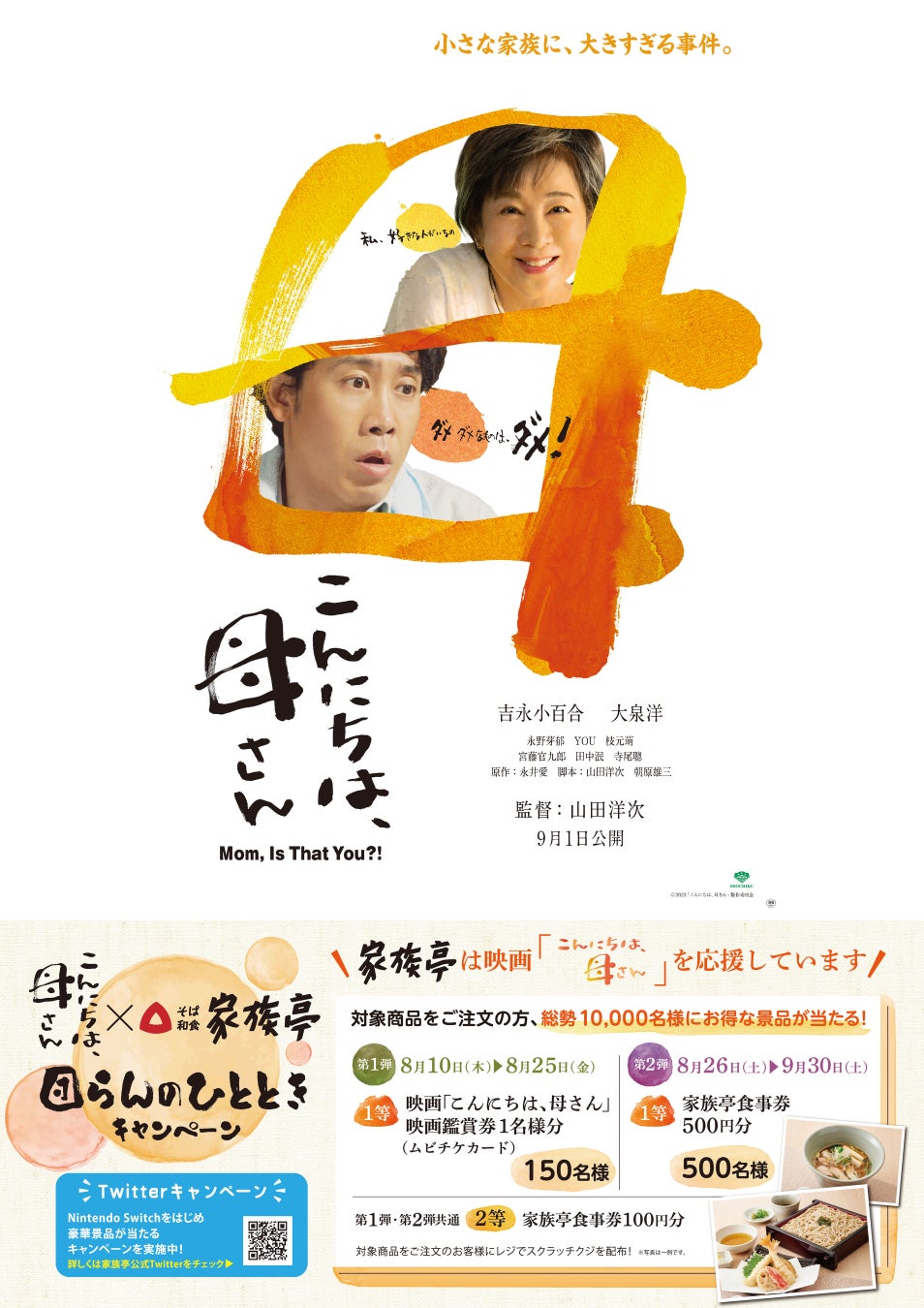 【家族亭】映画「こんにちは、母さん」×「家族亭」 団らんのひとときキャンペーンを8月10日(木)~9月30日(土)に開催