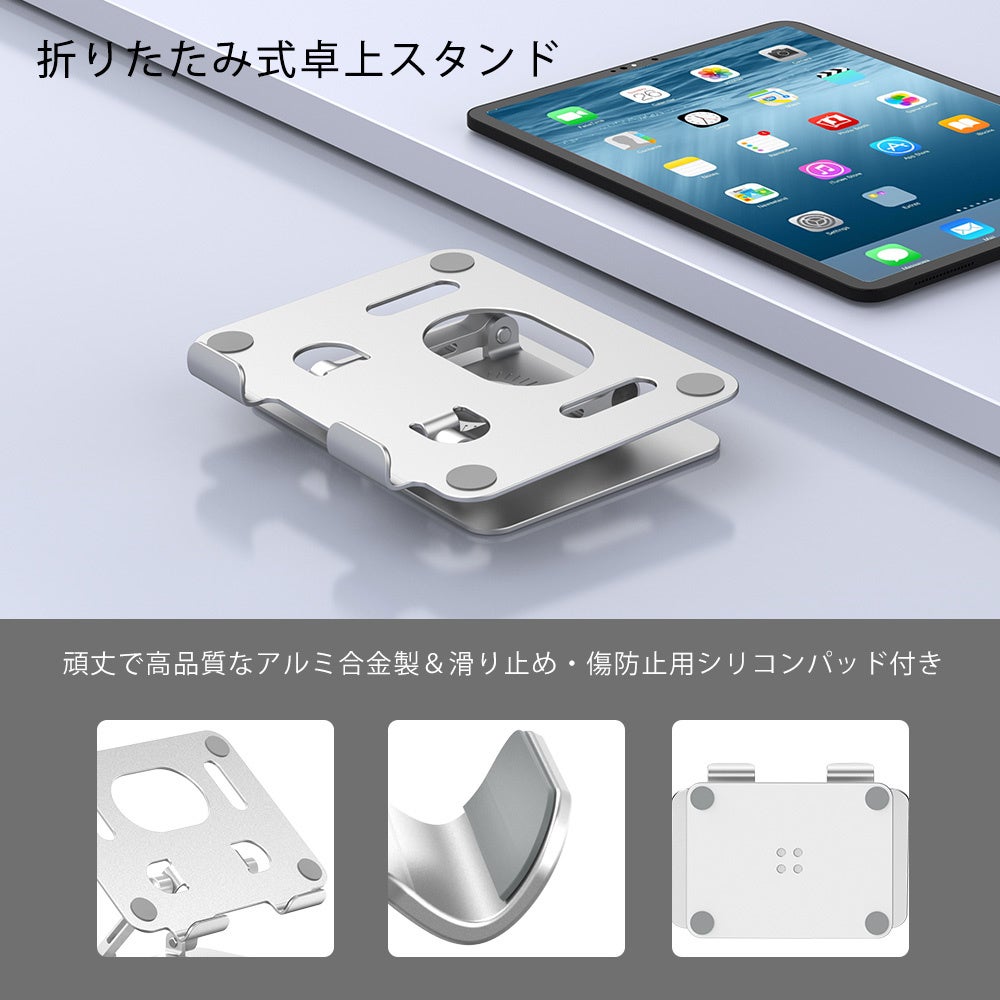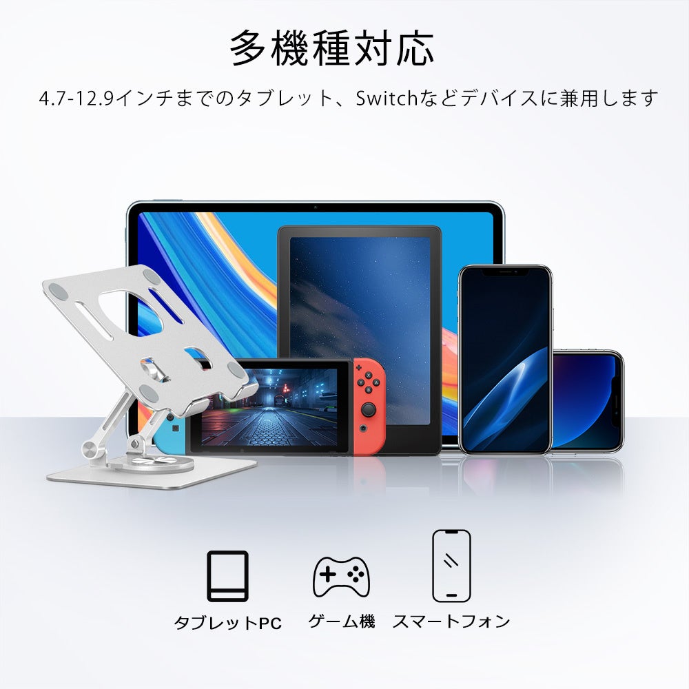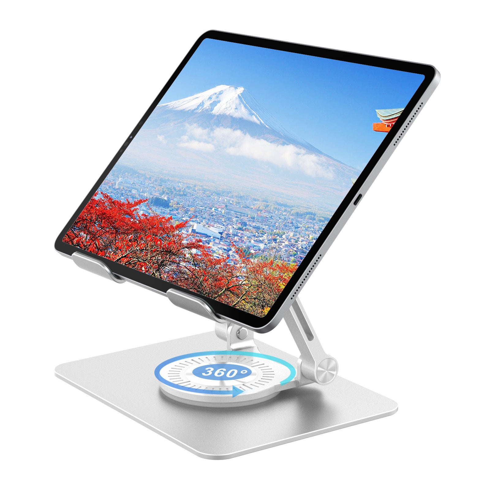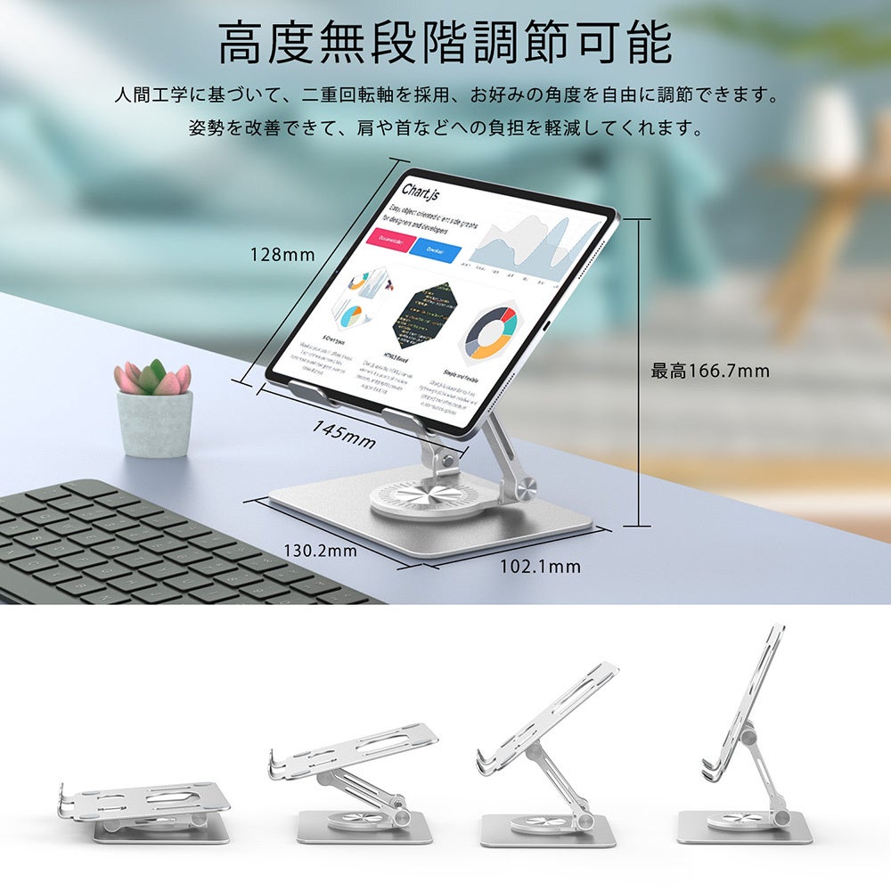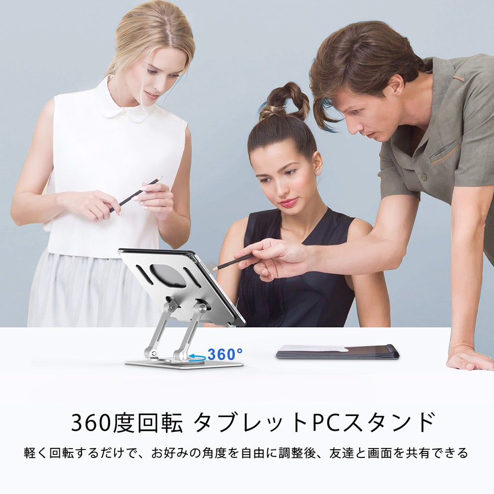 TOPESELタブレットスタンド 360度回転 iPad用スタンド折畳み式 ノートパソコンスタンド高さ角度調整可能 Tabletスタンド 縦置き 横置きタブレットホルダー 収納便利 タブレットPCスタンド 画面共有便利 姿勢改善 滑り止め 4.7~12.9インチまでiPad&タブレット&電子書籍リーダーなど機種兼用 アルミ材質(シルバー)