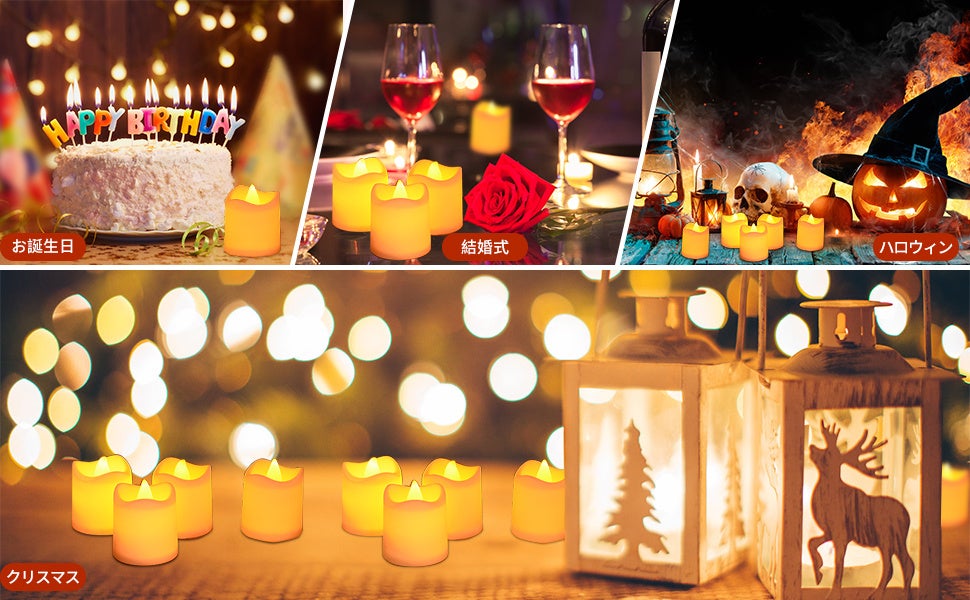 Litake LEDキャンドルライトは、24個セットのゆらめく炎が本物のキャンドルと遜色ない雰囲気を作り出します。安全なLED光源と電池式の設計で、火災の心配やメンテナンスの手間もありません。さまざまなシーンで活躍し、特別なイベントやリラックスした癒やしの空間を演出します。是非、誕生日やクリスマスパーティーなどの特別な日にお試しください!