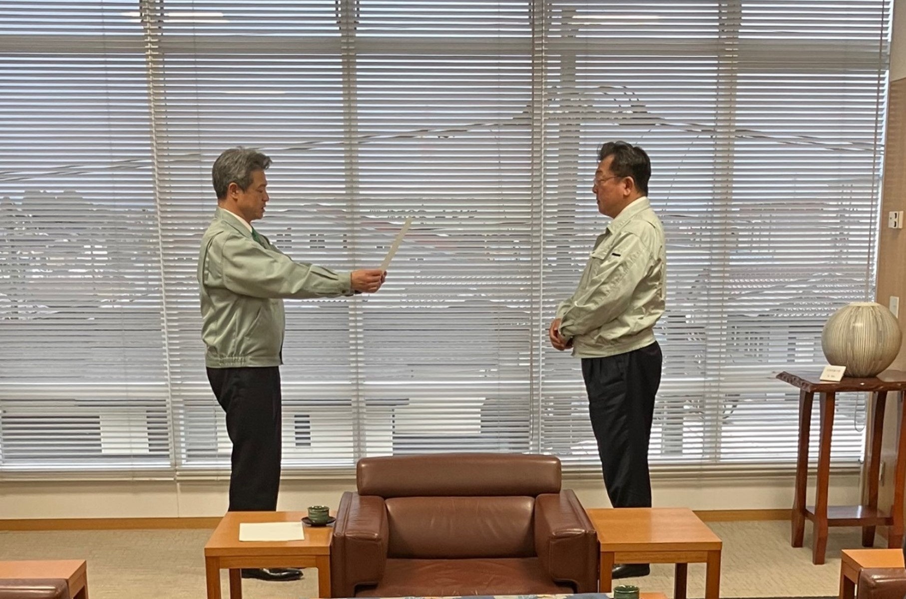 写真左:射水市、夏野市長 写真右:日本管財株式会社、東野執行役員