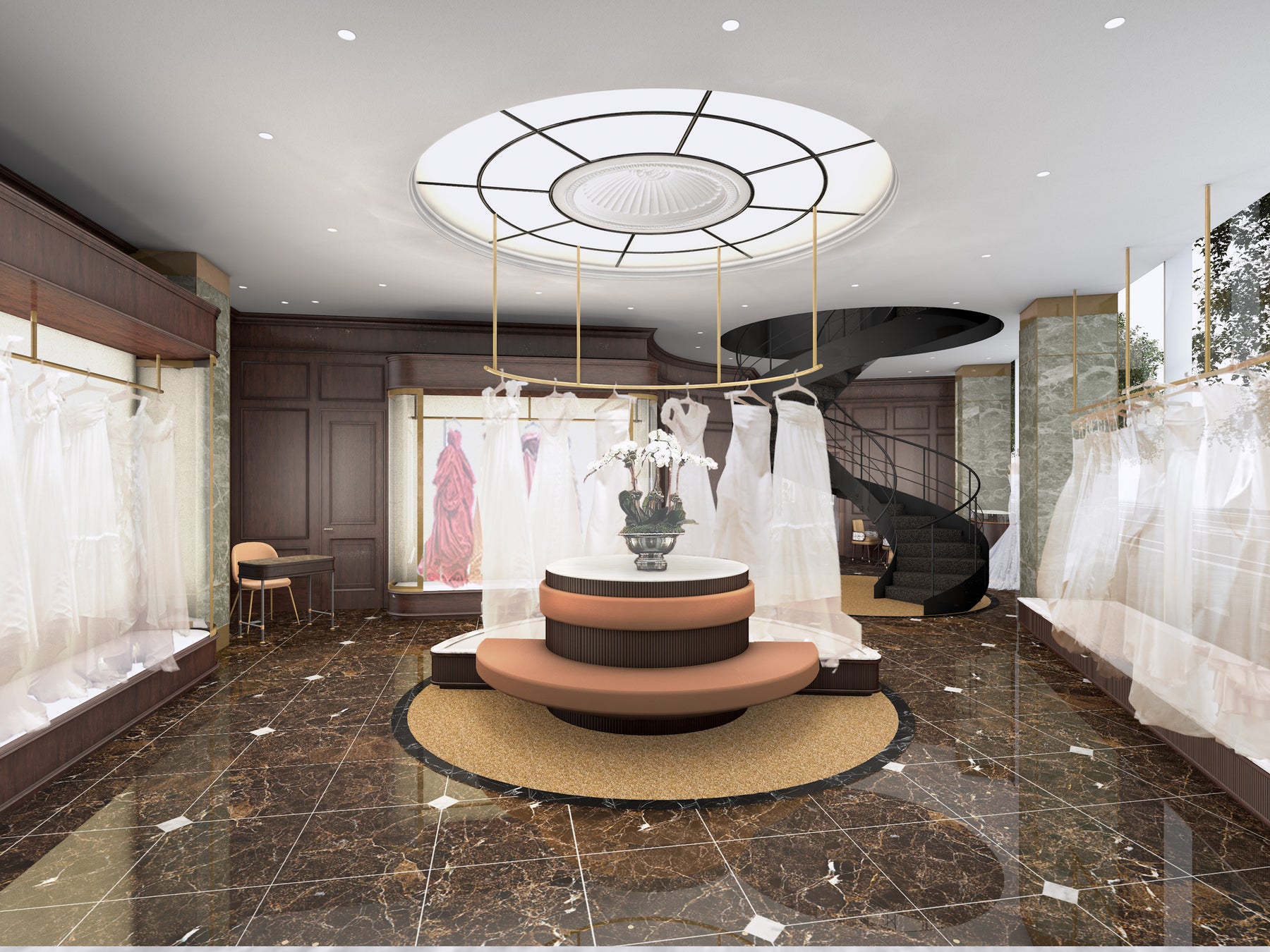 この度オープンする名古屋店は、優美な螺旋階段を中心に円のモチーフを取り入れた