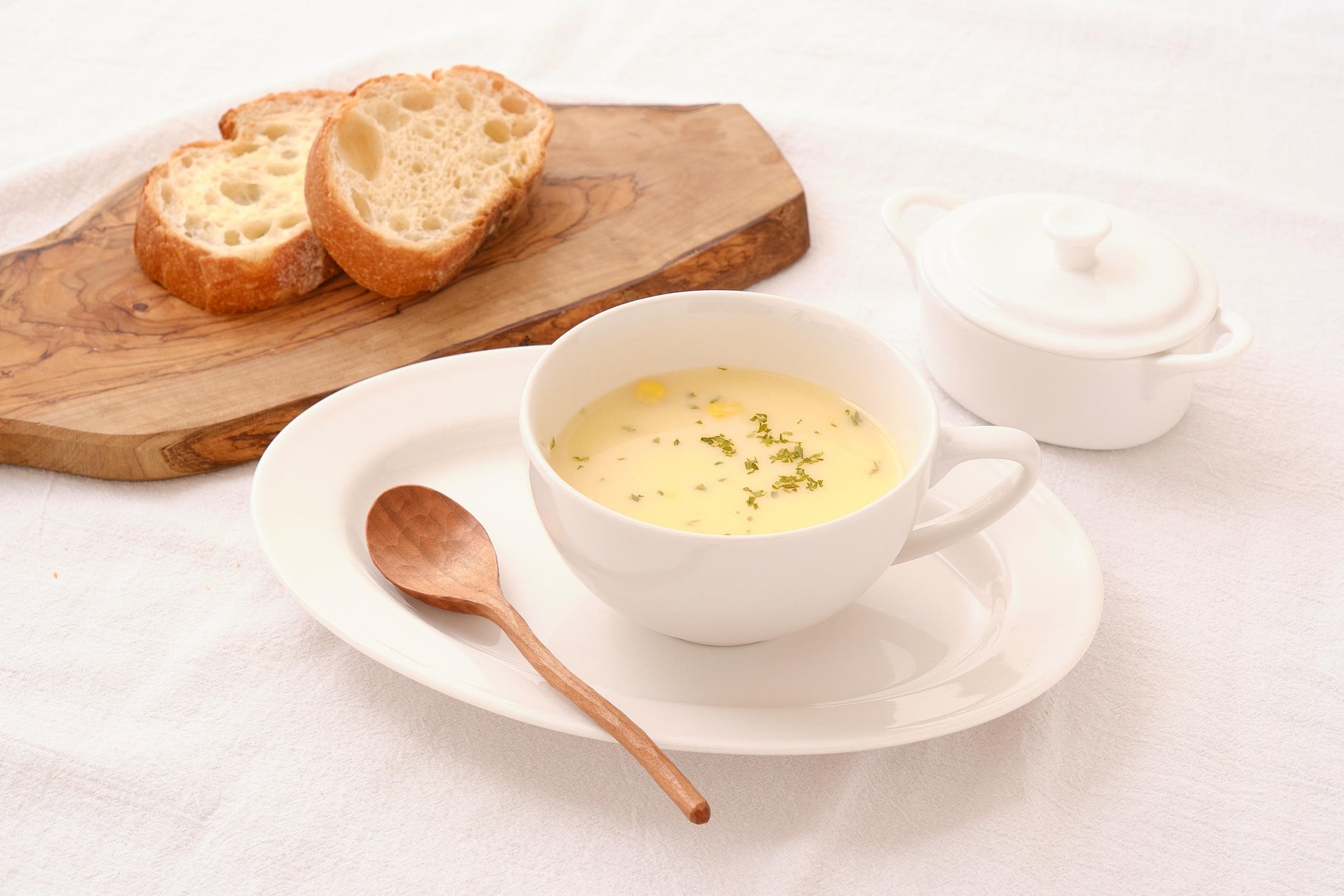 フリーズドライのコーンと北海道産スイートコーンのパウダーを使用したコーンポタージュです。