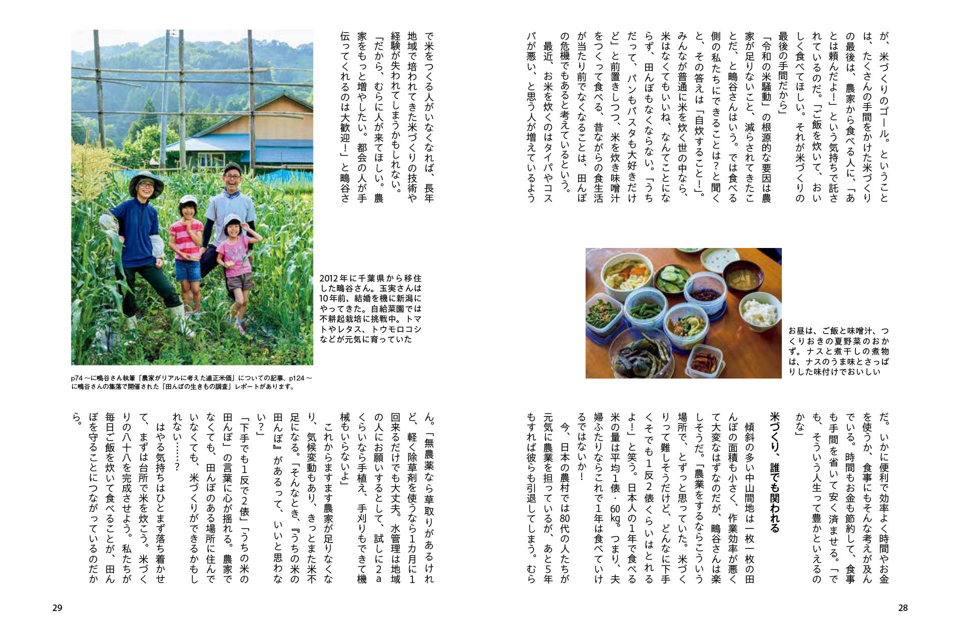 そんな編集部の想いに、「ここは一肌脱がねば」と結集してくれたのが、20名を超える農家・農業関係者。この本には、大規模な農家・小規模な農家、平坦地の農家・中山間地の農家、慣行栽培の農家・無農薬栽培の農家など、規模も環境も栽培方法もまったく違うさまざまな農家のリアルな本音が詰まっています。ジャーナリストや研究者にも、田んぼやお米の未来を一緒に考えてもらいました。