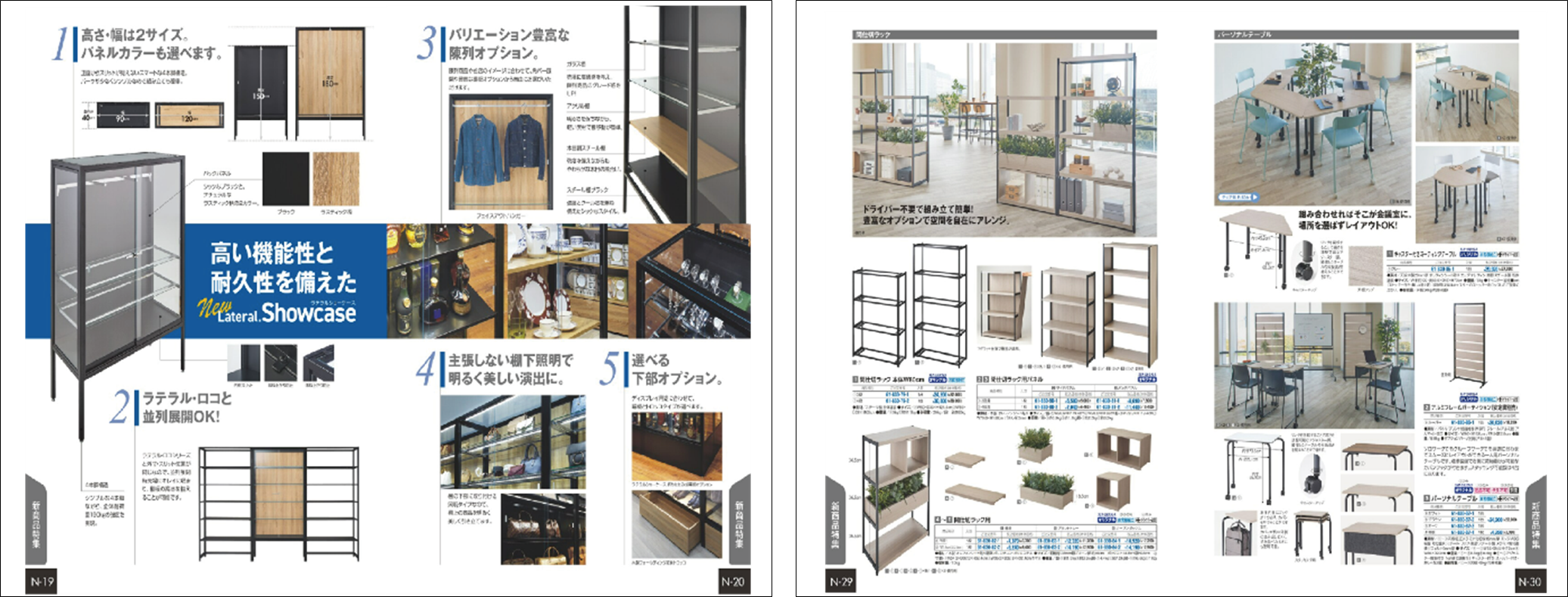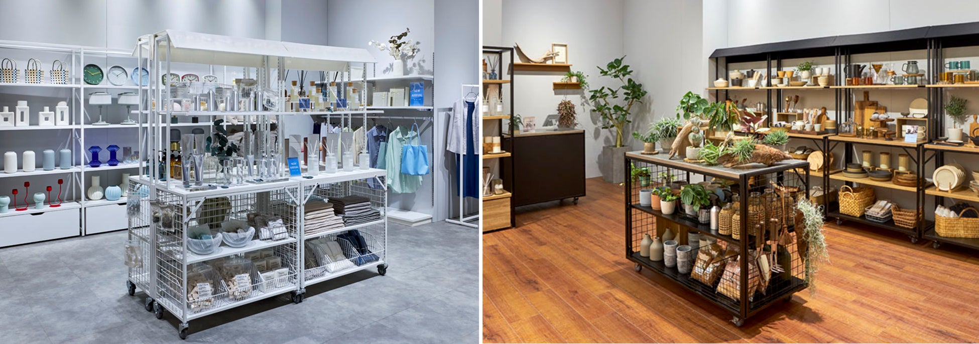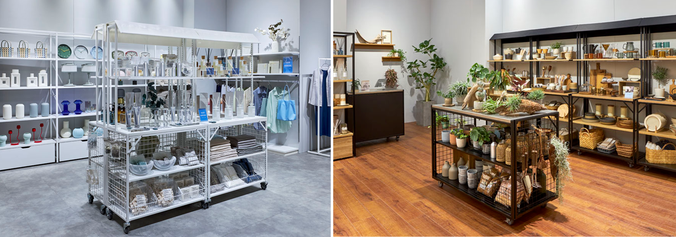 展示会では、売れ筋什器の「ラテラル・ロコ」シリーズの新サイズ&新カラーや、「ラテラル・ロコ」シリーズの下部キャビネットとしても使用できる「ファブルストレージボックス」、カスタム自在で簡単組立の「新型ハコマルシェ」など、省人化・省力化と意匠性を兼ね備えたオリジナル新商品の店舗什器を展示します。いずれも耐荷重や移動性などに優れ、店舗スタッフによる設営・レイアウト変更が容易で、店舗VMDのバリエーションを拡大していただくことが可能です。また、事務所やバックヤード向けのオフィス家具や、当社子会社であるD2C家具ブランド「ENEN(エネン)」のテーブルやソファなども展示予定です。多様な商環境に対応する新たな価値提案を通じて、より豊かな店舗運営・空間づくりをサポートする新商品を開発・提供してまいります。