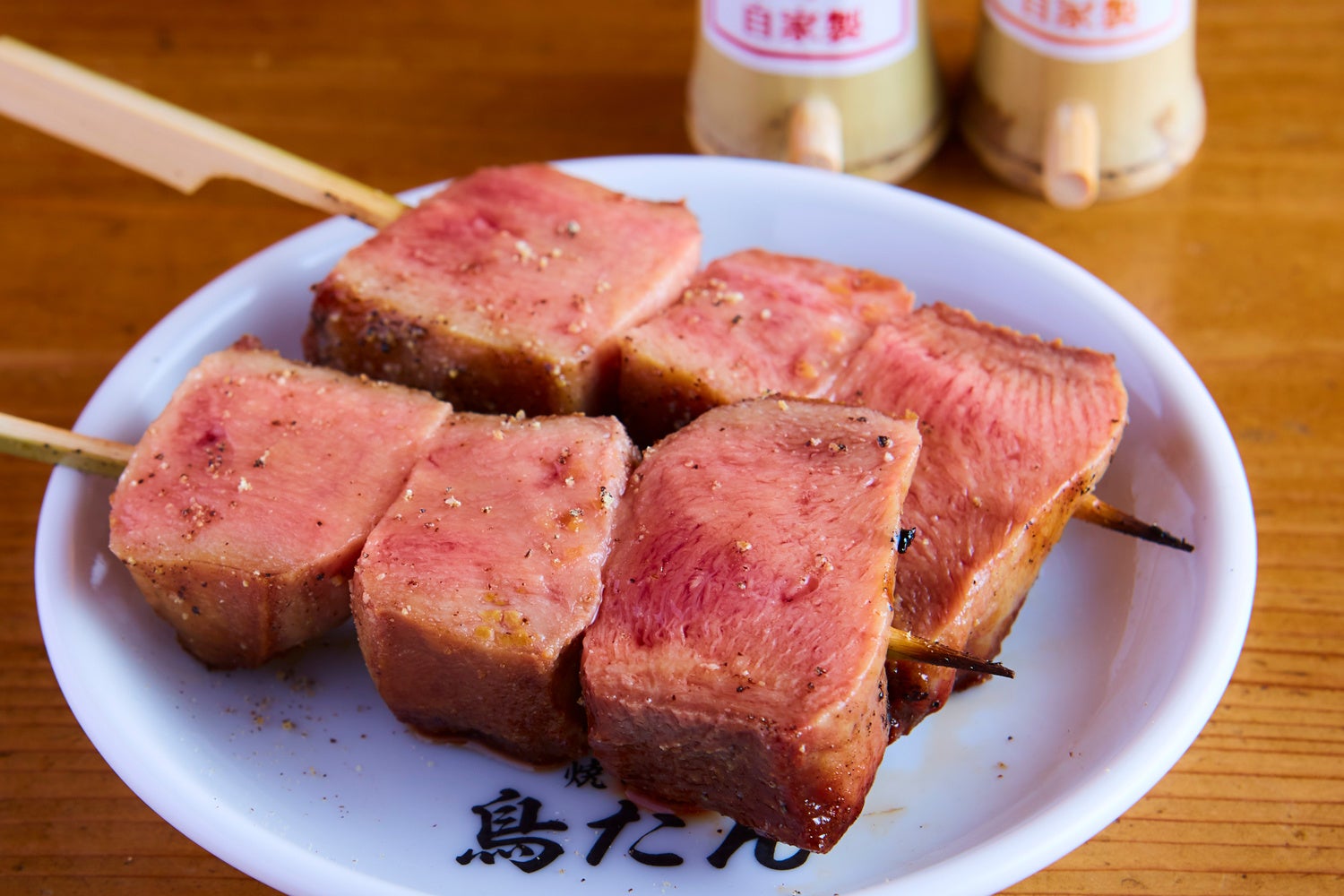 霜降りの上質部位のみを使用した鳥たん名物の牛タン串!