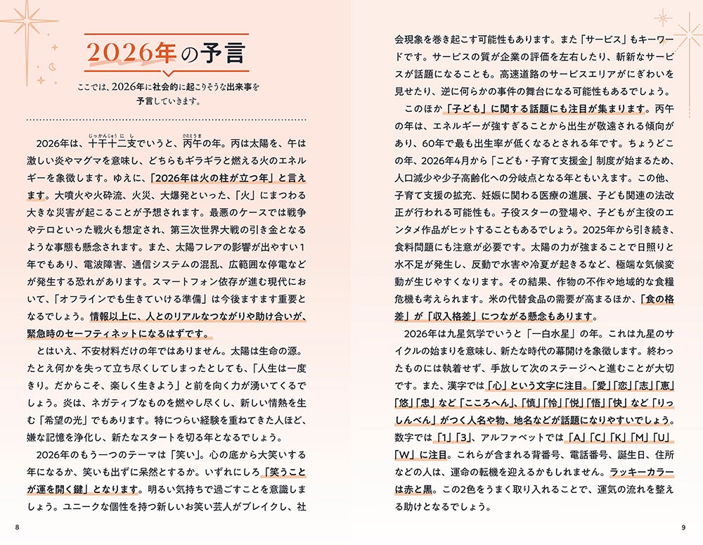 世の中の流れを読み解く2026年の総合運勢 2026年の予言、星回り、方位別運気などを徹底解説。