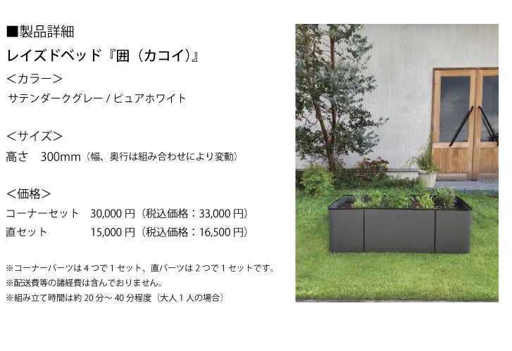 カツデン株式会社は、手軽さとデザイン性を両立したスチール製のレイズドベッド『囲(カコイ)を2024年4月25日より販売開始します。