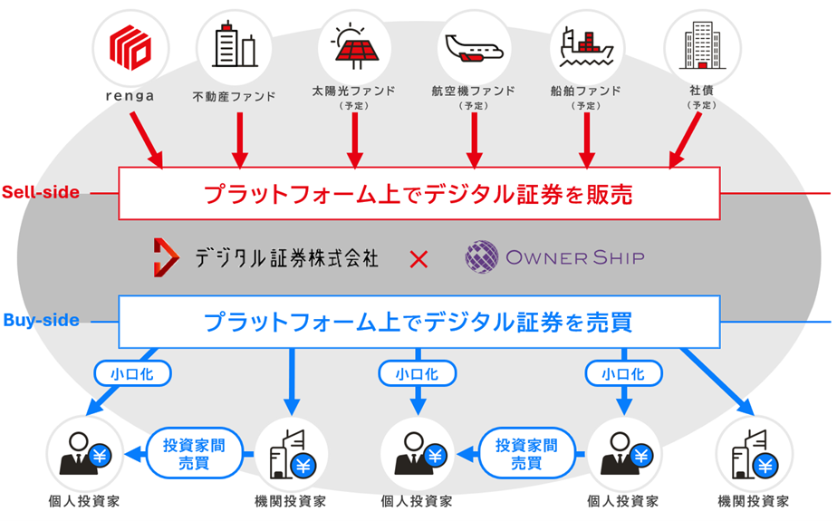 DS社は、“デジタル証券のマーケットプレイスで、資産運用を当たり前に。”というビジョンのもと、デジタル証券のファンド組成から販売に至るまでの幅広い領域における株主との協働を通じて、日本初・国内唯一の「デジタル証券のマーケットプレイス」を創り出し、デジタル証券業界の国内No.1プラットフォーマーを目指します。