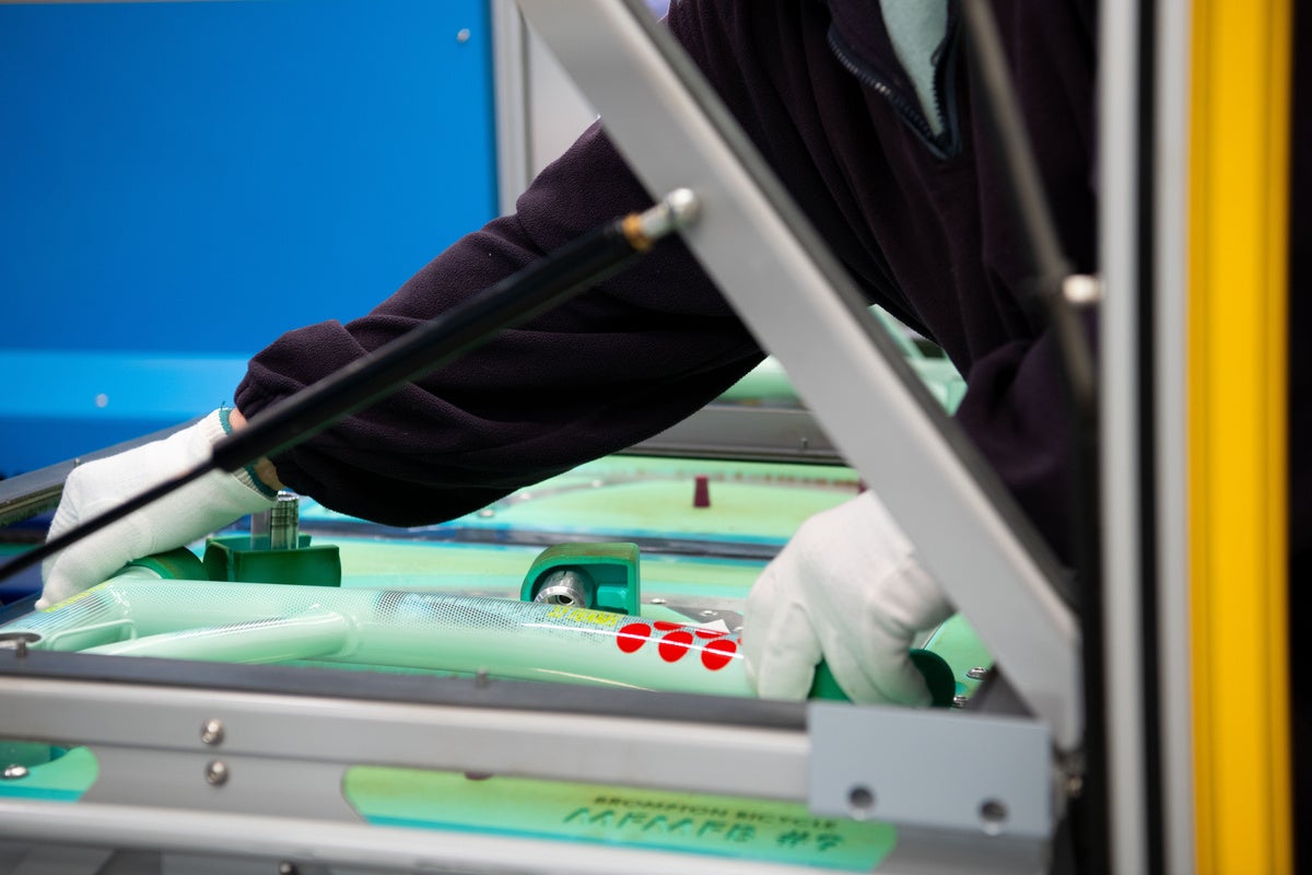 ロンドン工場にて一台ずつ手作業で組み立てた後、パウダーコーティングと昇華転写加工を施しています。