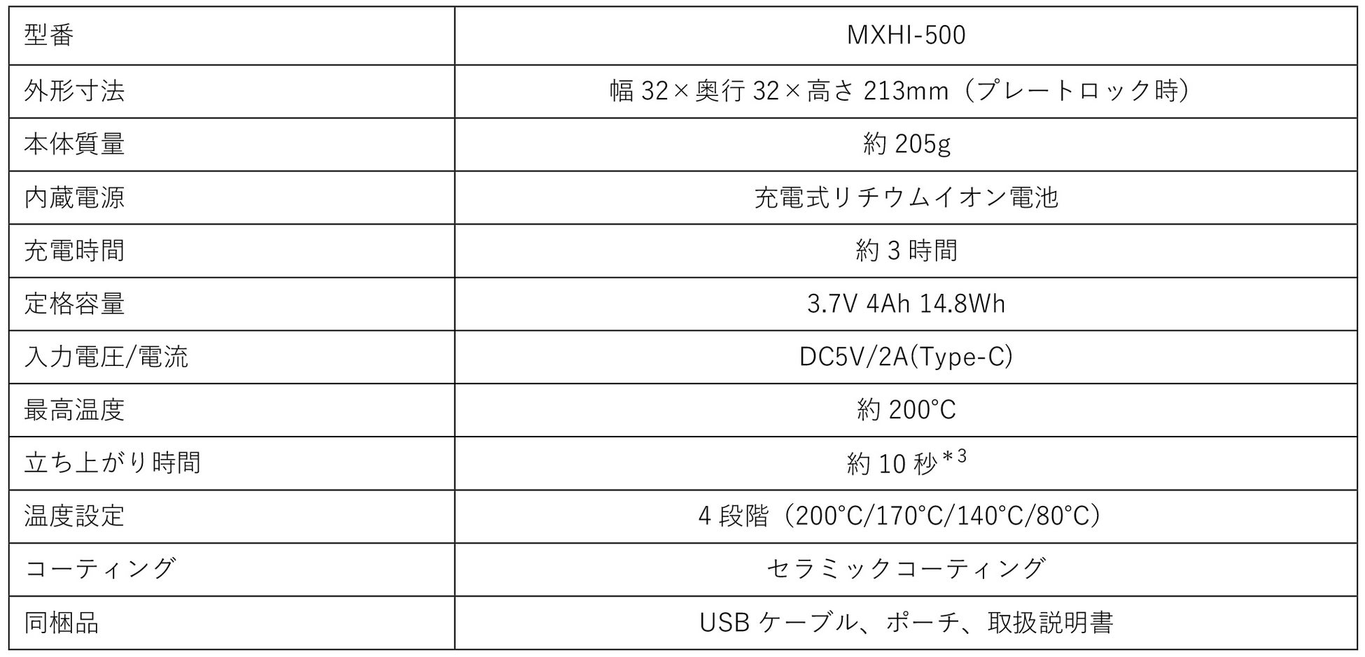 *3:100℃到達時間(最高温度設定時)