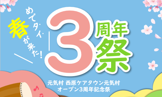 【4月13日(日)】熊本県阿蘇郡西原村「西原ケアタウン元気村」 オープン3周年記念祭を開催!