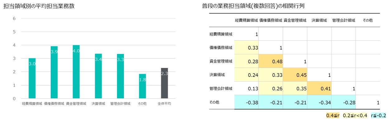 ・経理・財務部の普段の業務内容(複数回答)から、一人あたりが担当している業務は平均2.3領域