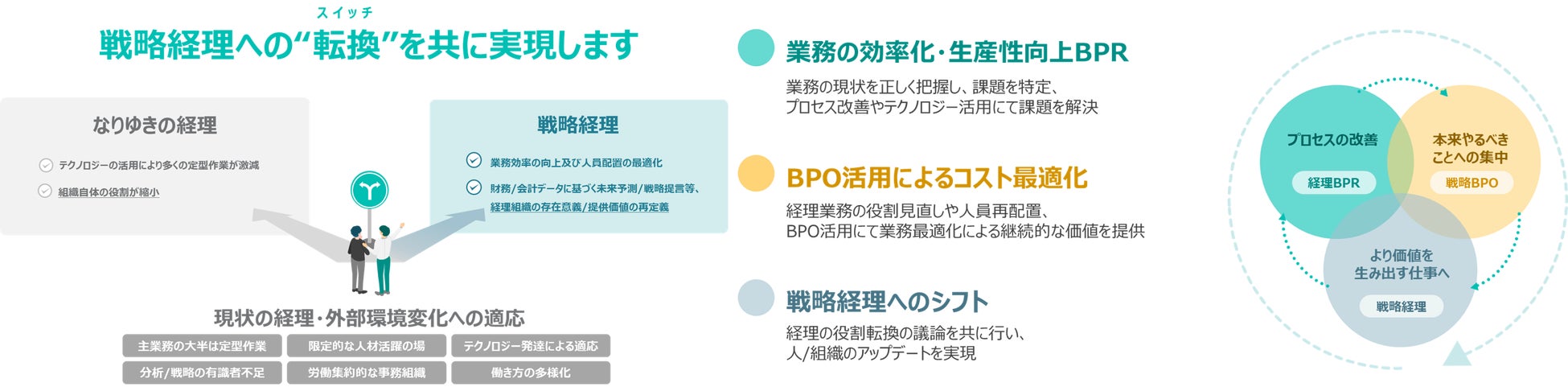 パーソルWSCは、「戦略経理」の実現に必要となるすべてのサービスをワンストップで提供し、支援します。