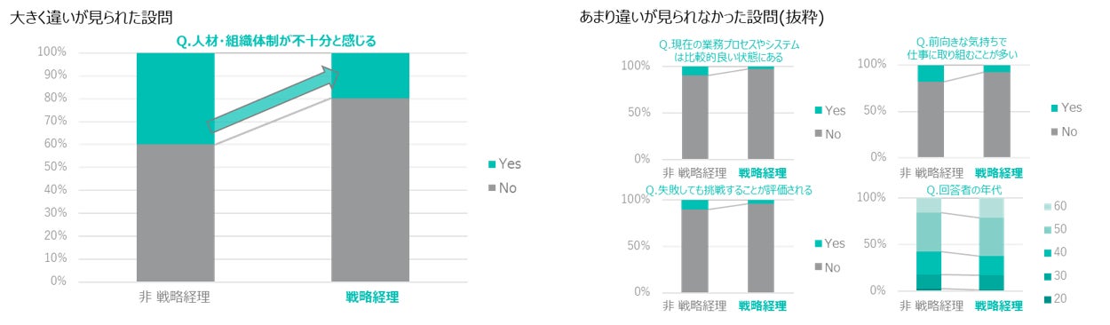 ・“戦略経理”的素養のある層は、他の層と比較して「人や組織体制が比較的十分である」と感じていることが明らかになった