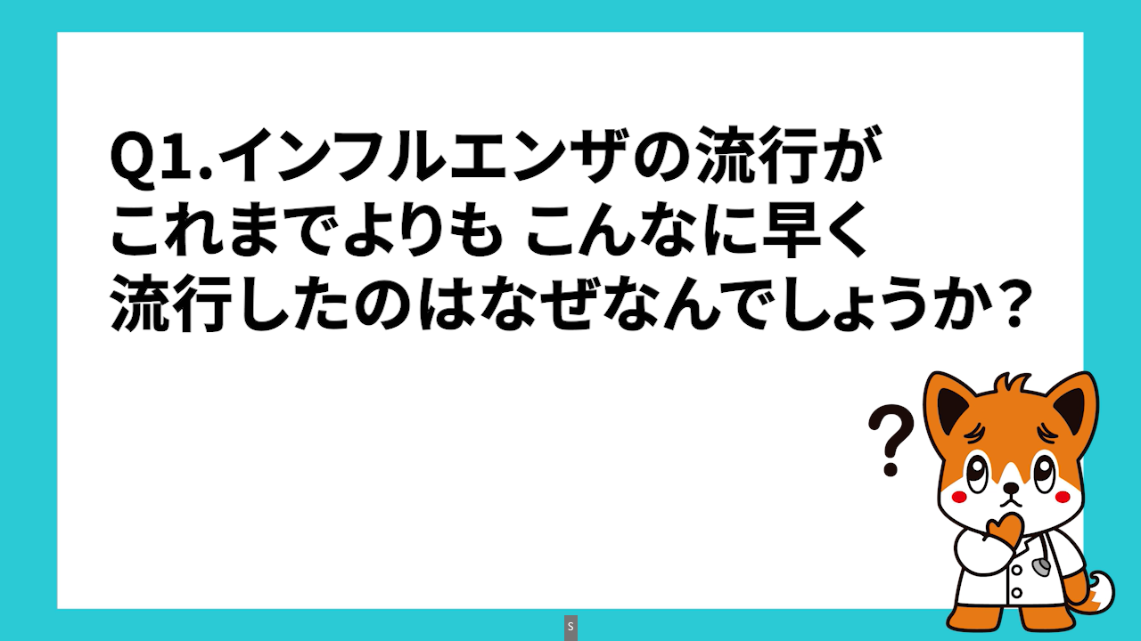 (1)「インフルエンザの流行がこれまでよりもこんなに早く流行したのはなぜか」
