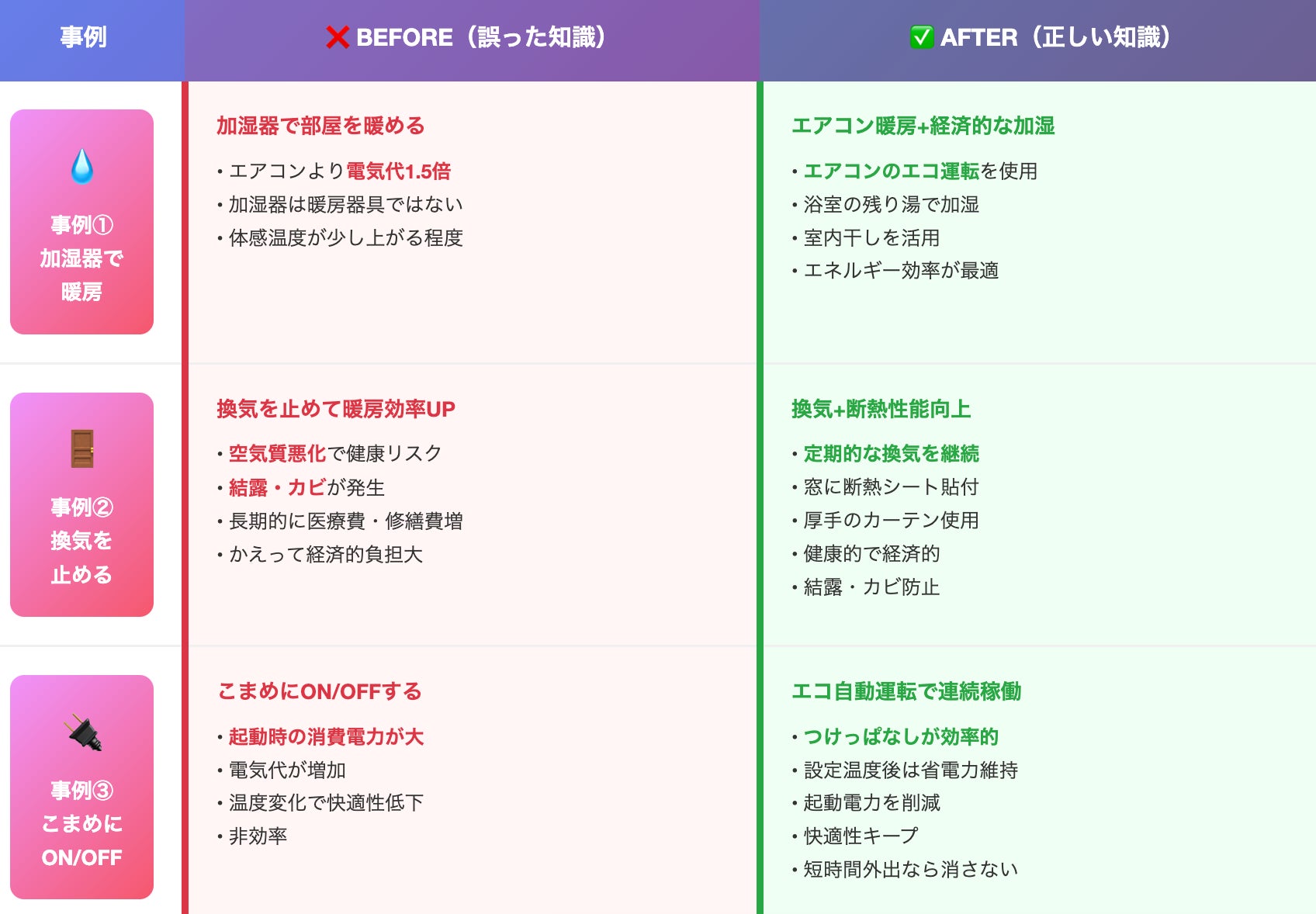 本コンテンツでは、正しい知識に基づいた恒久的な省エネ手法を提供し、誤った節約方法による健康リスクやエネルギーの無駄遣いを防ぐことを目指します。