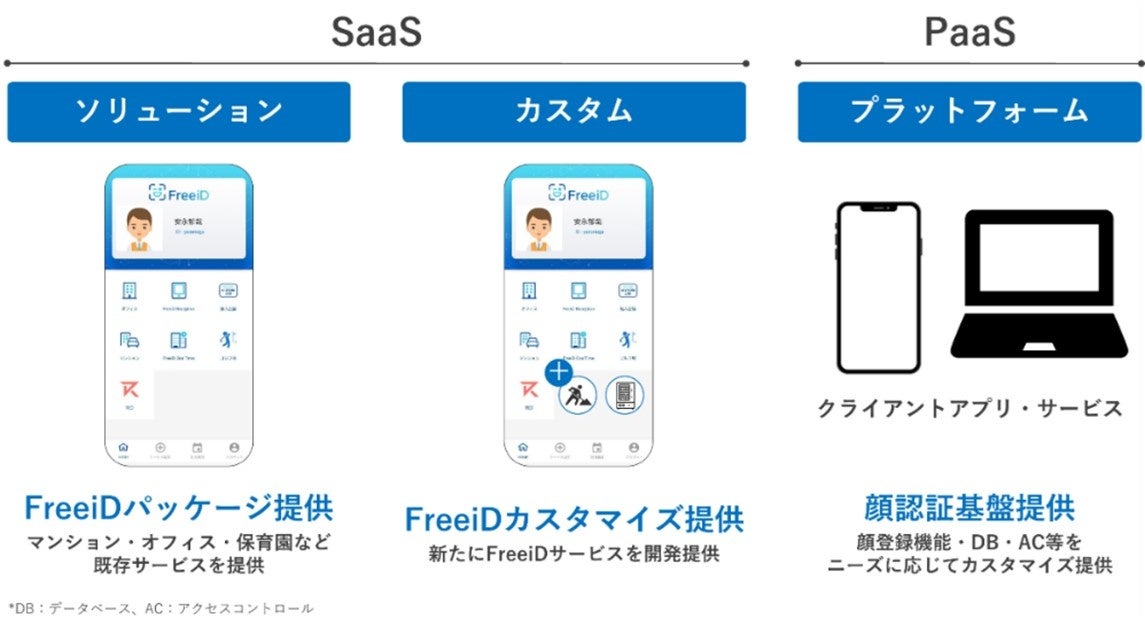 マンション・オフィス・保育園などFreeiDのパッケージサービスを提供する「ソリューション」、顧客ニーズによりFreeiD顔認証サービスをカスタマイズする「カスタム」、顧客アプリやサービスに顔登録・保存・認証等の顔認証基盤を提供する「プラットフォーム」の3事業を展開しています。