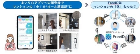 一方、DXYZが開発・提供する「FreeiD」は、鍵や財布・スマホを持つことなく、1度の顔登録で『顔ダケで、世界がつながる。』顔認証プラットフォームです。住宅領域では、国内初※1の鍵が一切不要となる「オール顔認証マンション」を36棟、オール顔認証マンションを含むFreeiD導入マンションを52棟実現しております(2023年11月末時点)。