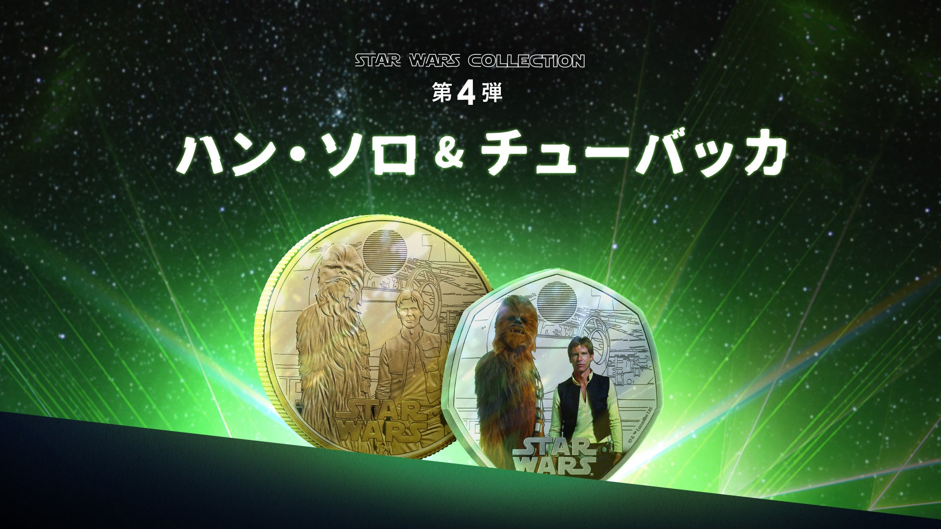 シリーズ最終章となる今回のコインのモチーフには、反乱同盟のキーパーソン、ハン・ソロと、長い毛並みが特徴的なウーキーの戦士、チューバッカが採用されました。