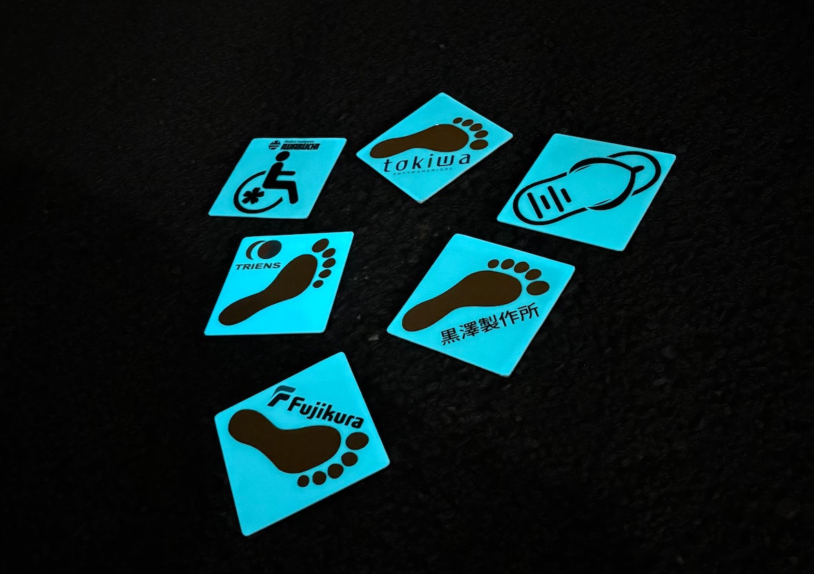 今回、このプロジェクトで使用したのが株式会社humorousが開発した蓄光パネル「ナイトコンシェルジュ( https://humorous.jp/nightconcierge )」です。日中の光をパネルが吸収することで、暗闇のなかでほんのりと光が輝くパネルです。