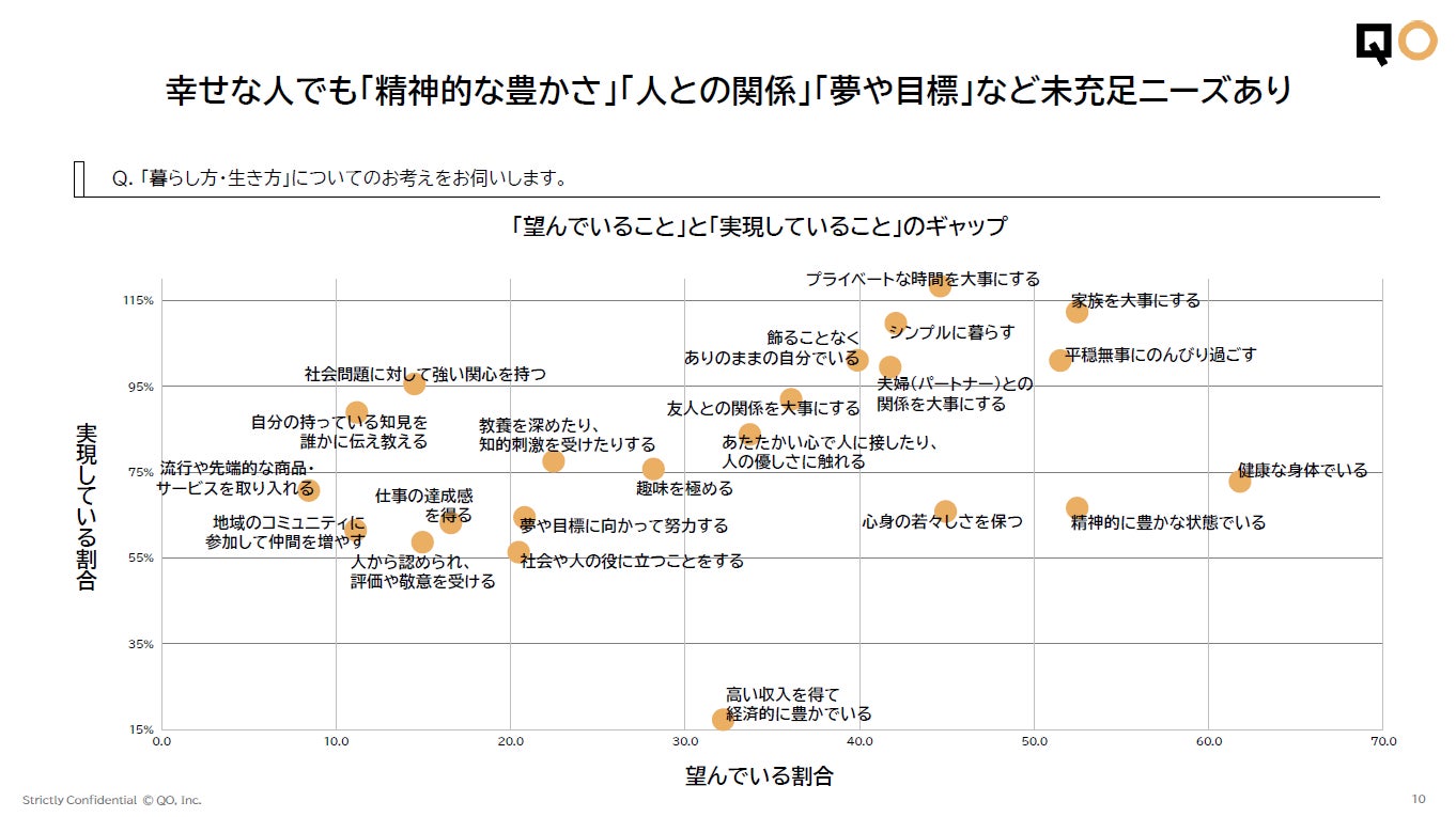 幸せな人でも「精神的な豊かさ」や「人との関係」「夢や目標への努力」に未充足ニーズあり。世代・性別を問わず求められるのは、睡眠の質向上につながるサービスコンセプト。
