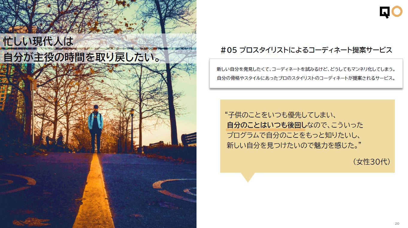 調査レポートでは、各サービスコンセプトについて、受容性やどのような属性の方に何が評価されているかを詳しくご紹介しています。今回の調査結果も踏まえ、QOとエコトーンは、生活者を思うウェルビーイングな商品やサービス、事業づくりを支援してまいります。