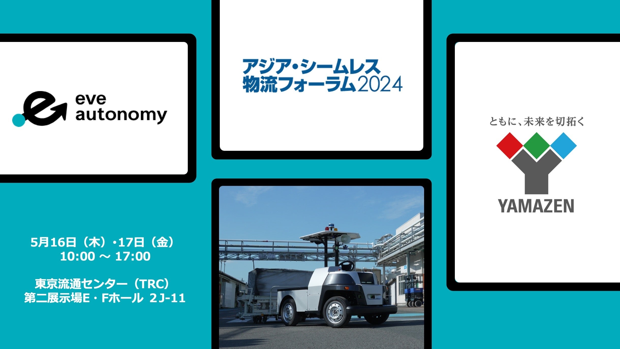 株式会社eve autonomy(イブ・オートノミー、静岡県磐田市、代表取締役:星野 亮介、以下「eve autonomy」)は、2024年5月16日から開催される『アジア・シームレス物流フォーラム2024』に出展する株式会社 山善(以下「山善」)のブースにて、革新的な無人搬送ソリューション『eve auto®(イヴ オート)』の車両を展示します。