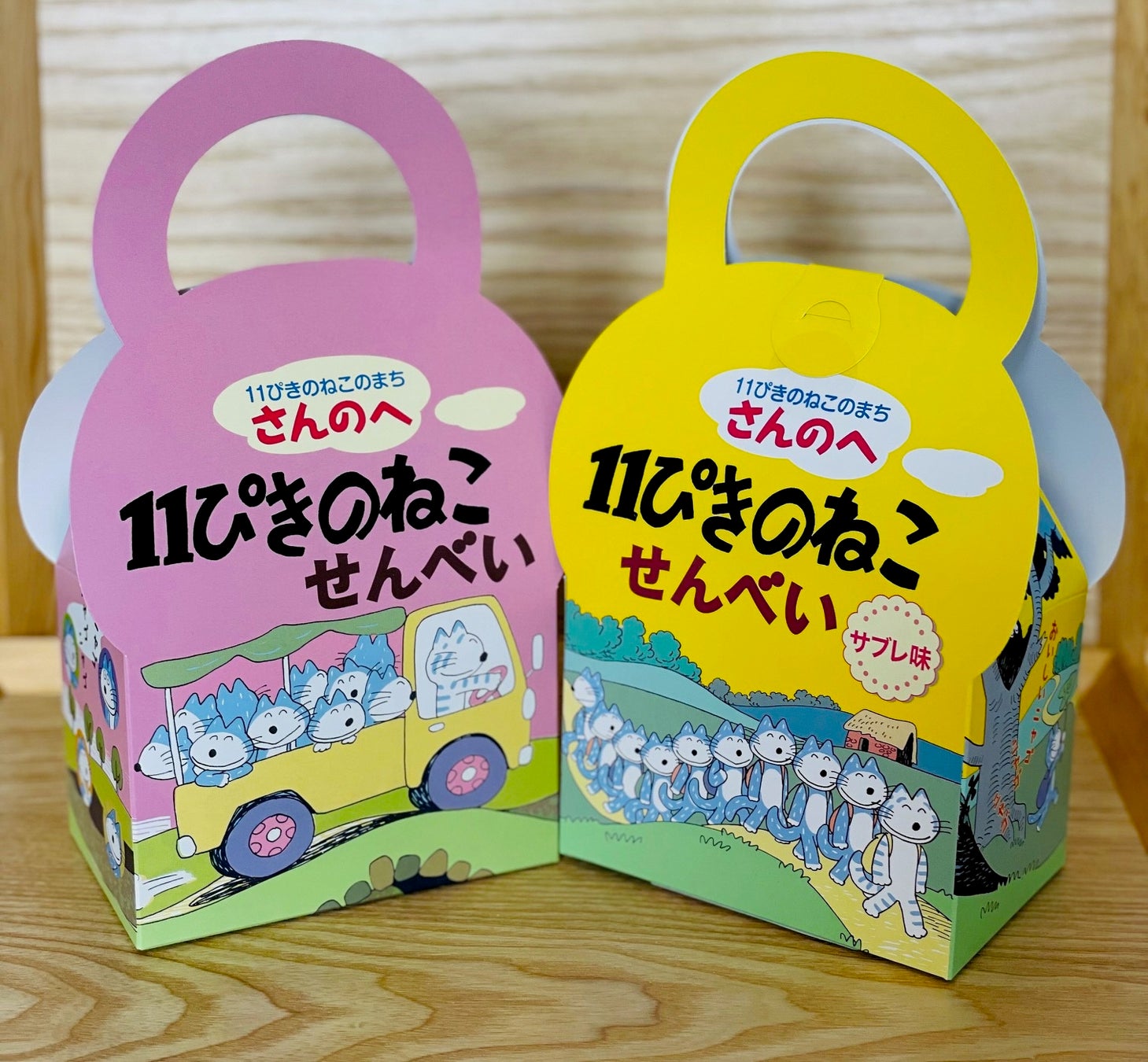 ねこの焼き印2種類を押したクッキータイプのおせんべいです。