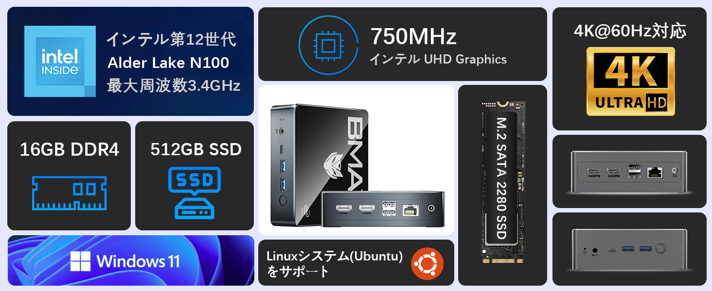 [人気商品]ミニPC N100 16+512GB(win11/Ubuntu)特価22,699円、超激安で販売中!!