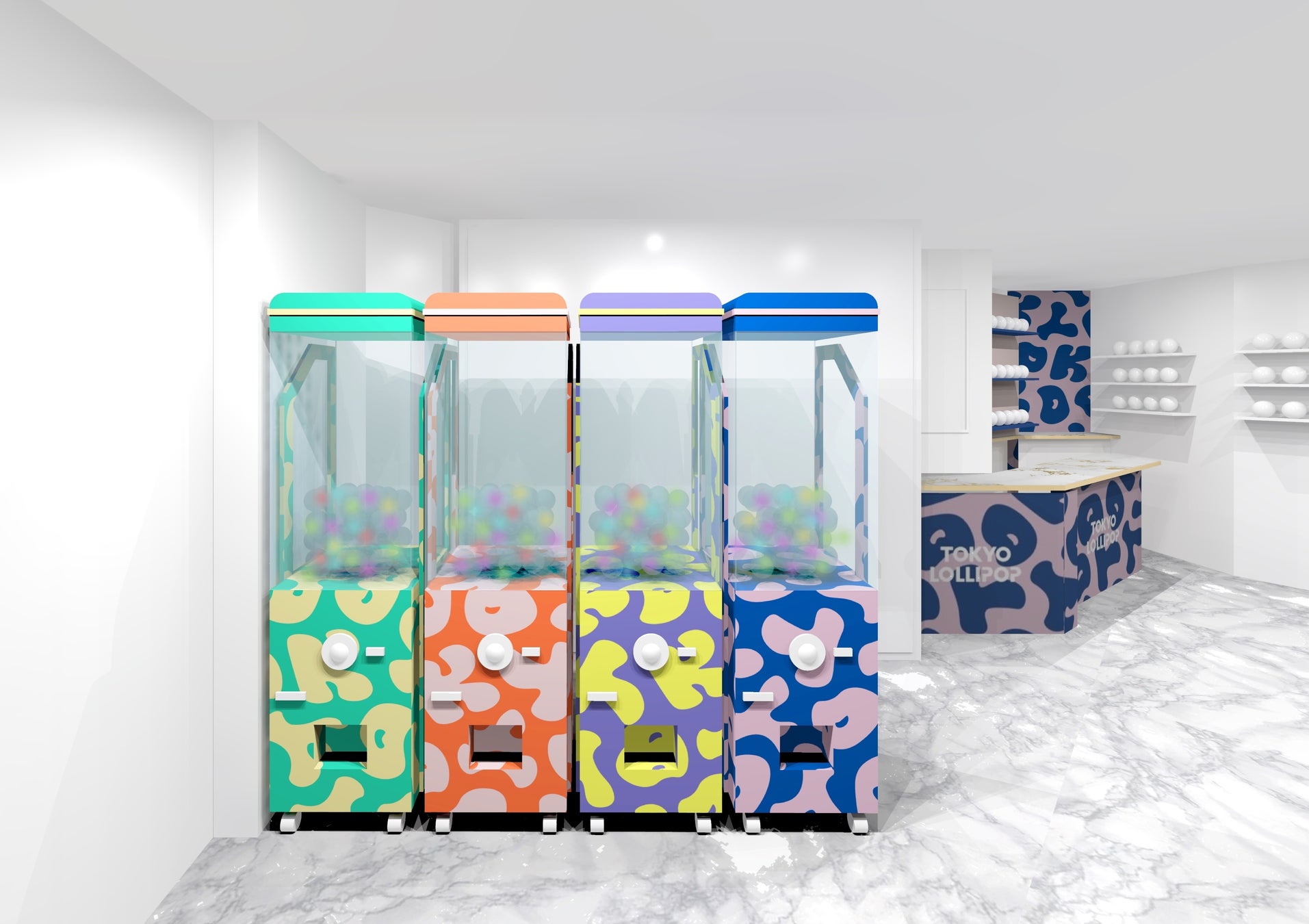 店内には、TOKYO LOLLIPOPならではの遊び心が詰まった、高さ180cm超えの巨大販売機を設置しています。東京発 POPカルチャーの発射台として世界へ展開していきます。