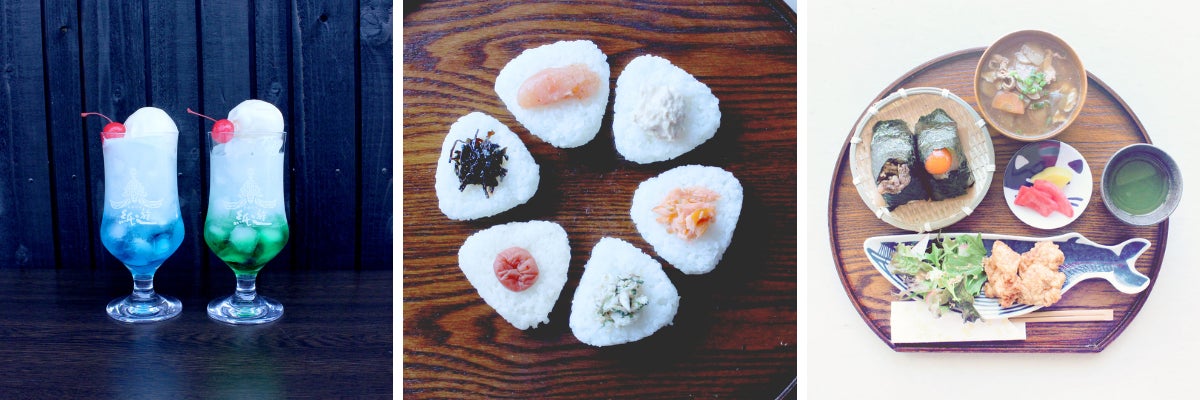その他にも、レトロなグラスで提供のクリームソーダは、深い緑と透明なブルーの2色展開。美濃の森や長良川の清流をイメージした色合いは、思わず写真を撮りたくなる美しさです。