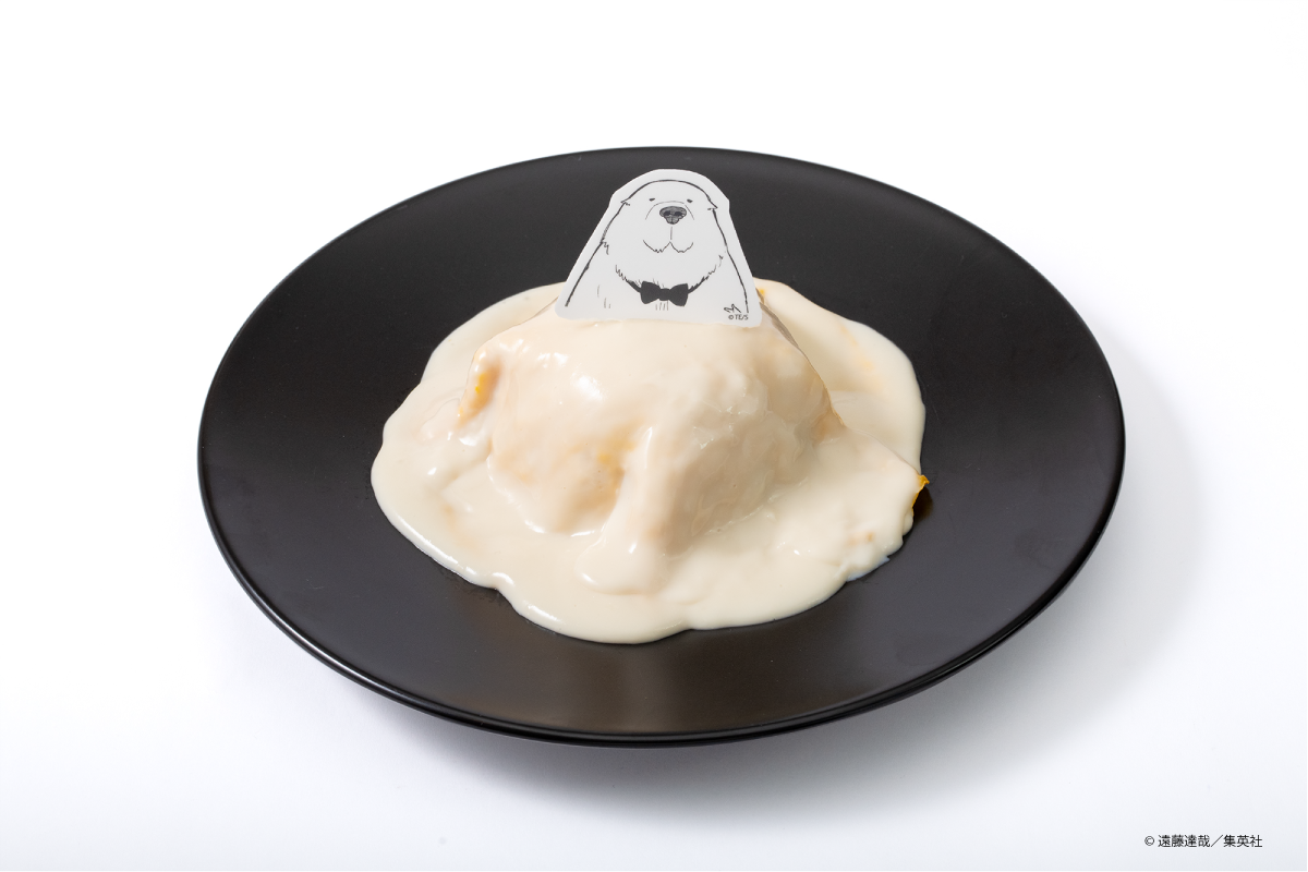 「ボンド風オムライス」 1,760円:オムライスに真っ白なクリームソースをかけて、もふもふなボンドを再現しました。