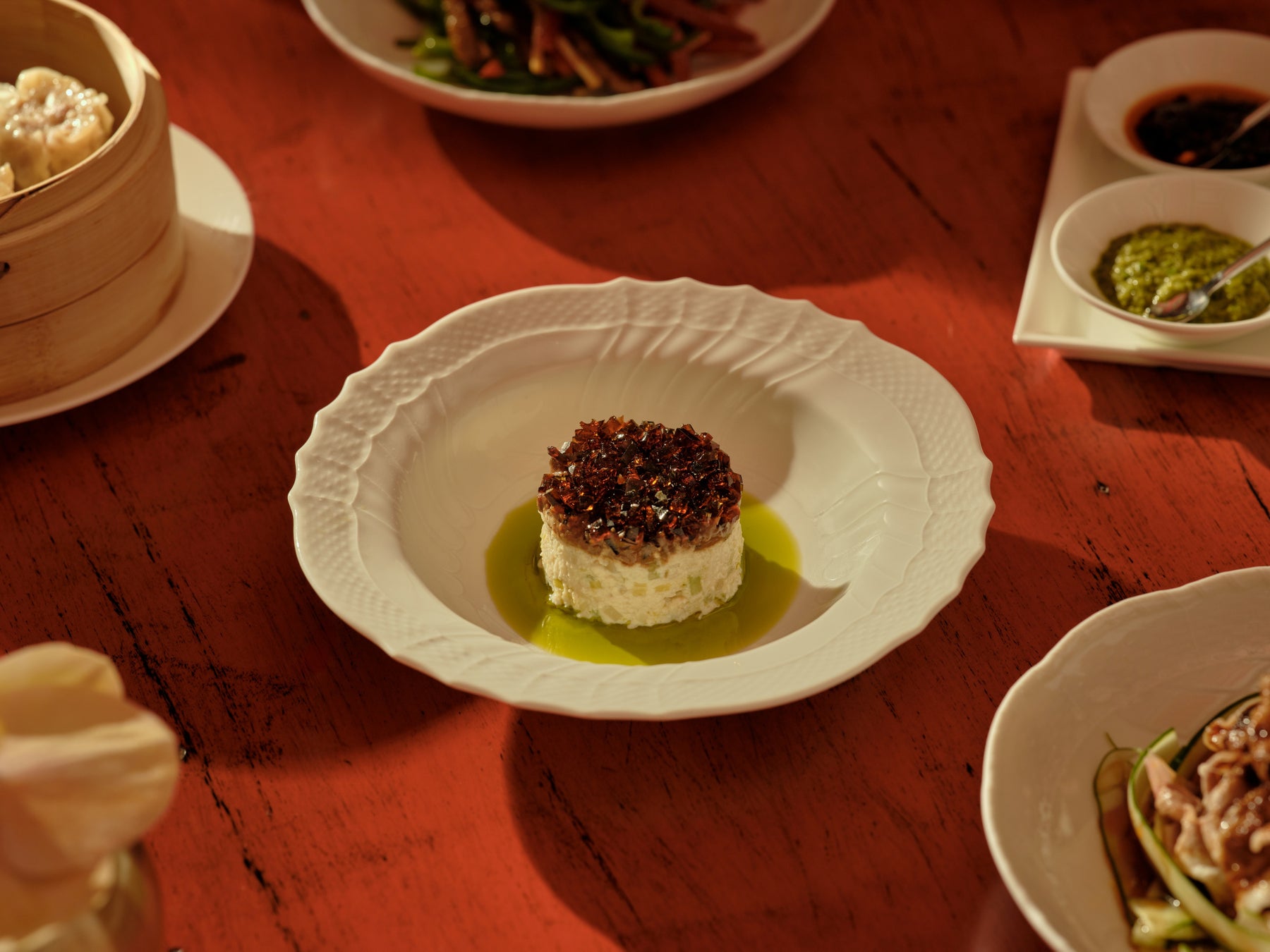 濃厚でまろやかな海老ソースが魅力の「ふわトロかに玉 」は、柑橘の葉 “コブミカン” で香りづけしたオイルを加え、ほんのりエスニックなアクセントをプラス。口いっぱいに広がるタラバガニの風味とエビの旨みに思わず頬がゆるみます。どこか懐かしくて、でも新しい<町中華>のアラカルトは全13品をご用意いたしました。ジャヌ東京でしか味わえないこの『町中華 at Hu Jing』をぜひ皆さまでお楽しみください。